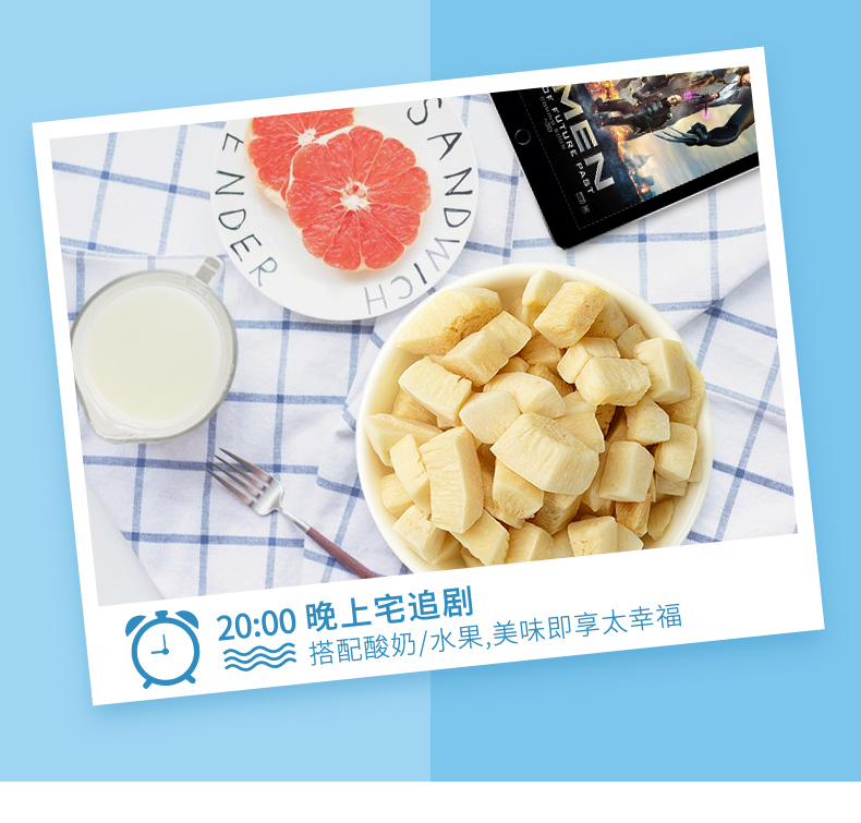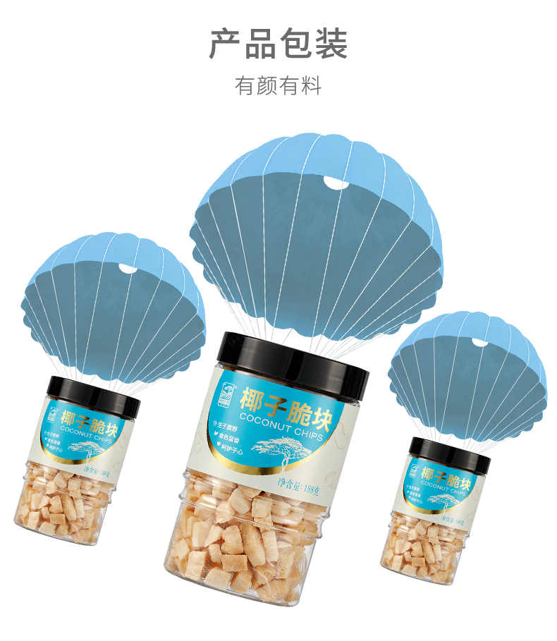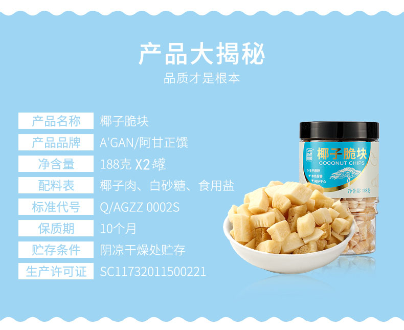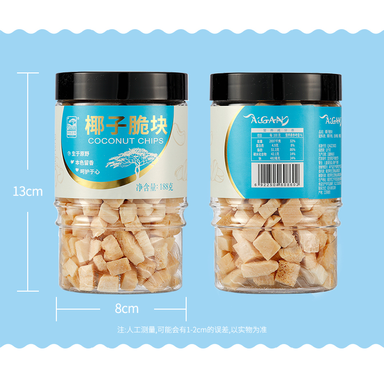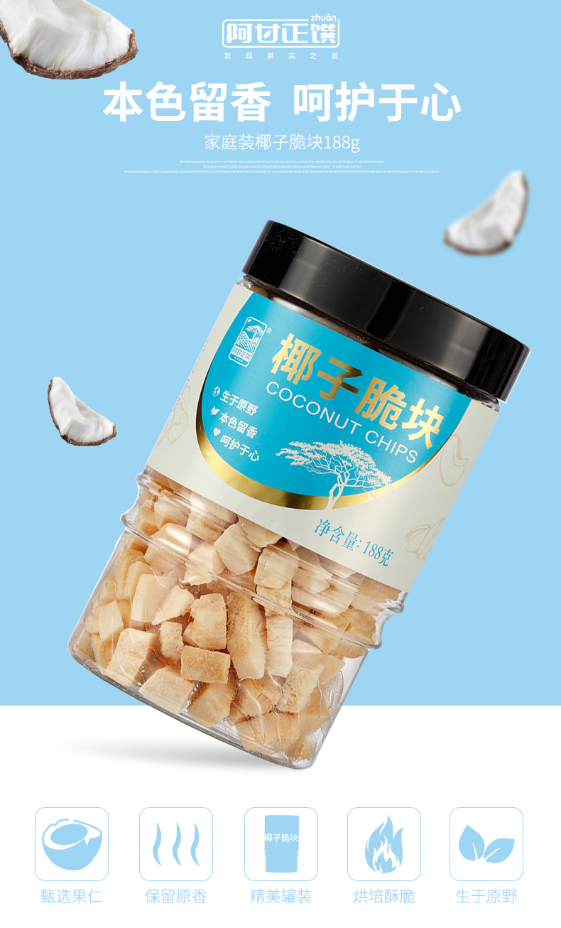 阿甘正馔 椰子脆块休闲零食代餐果干椰子果肉片冻干188g*2罐 水蓝色