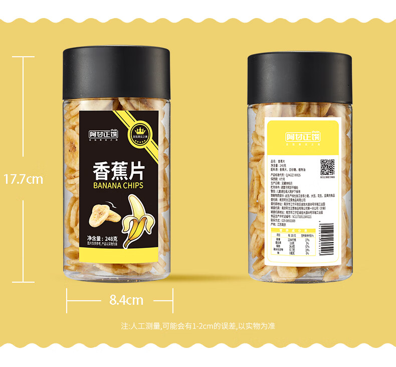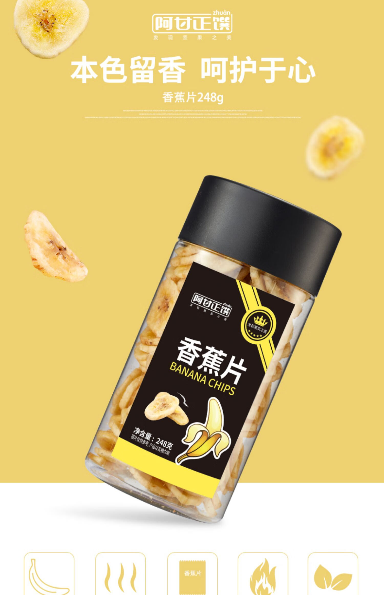 阿甘正馔(A'GAN)香蕉片休闲网红零食香脆水果干小吃礼罐装248g*2罐 曜石黑