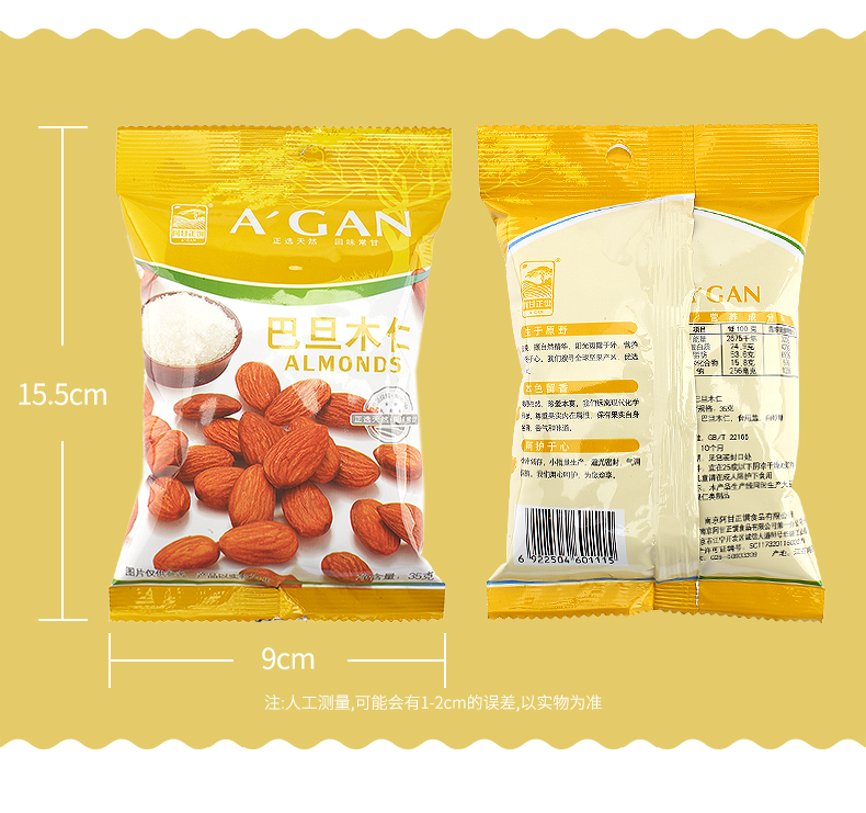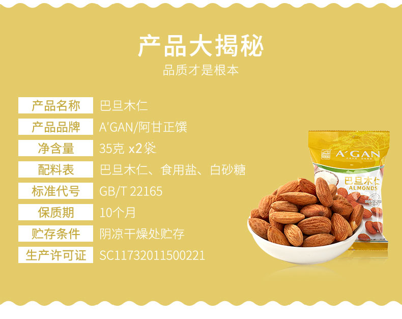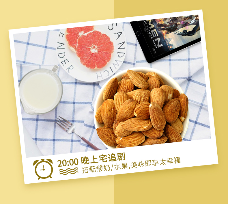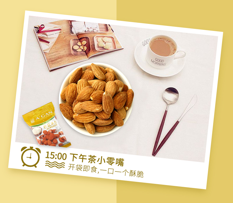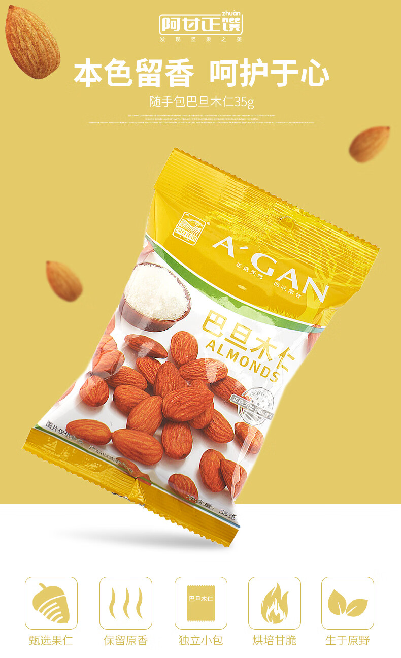 阿甘正馔 休闲零食 每日坚果炒货干果果仁 巴旦木仁35g*2袋 奶茶杏