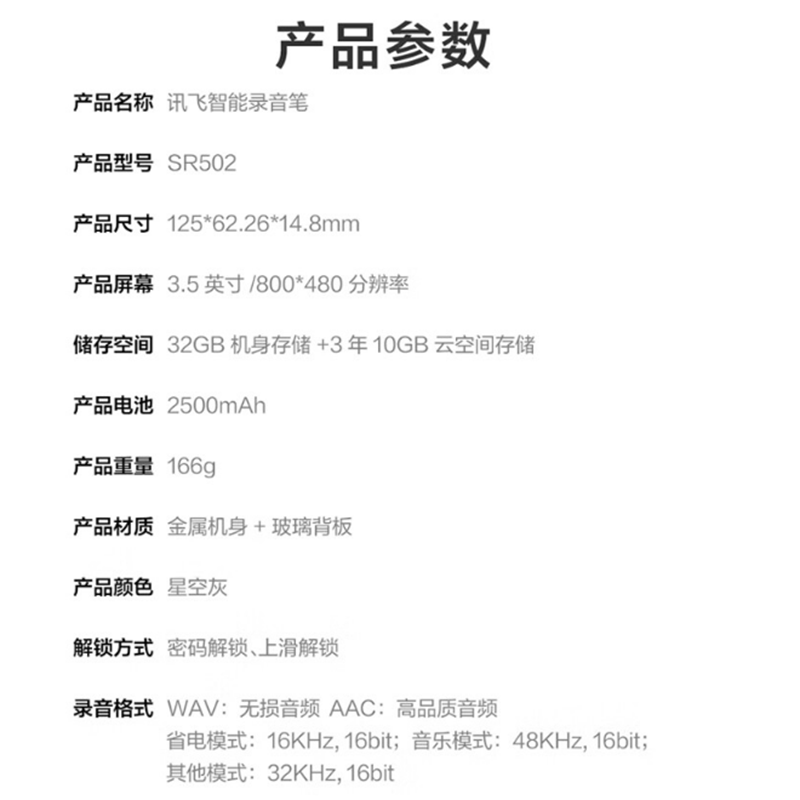 科大讯飞 智能录音笔SR502 32G+10G云存储(单位:个) 曜石黑