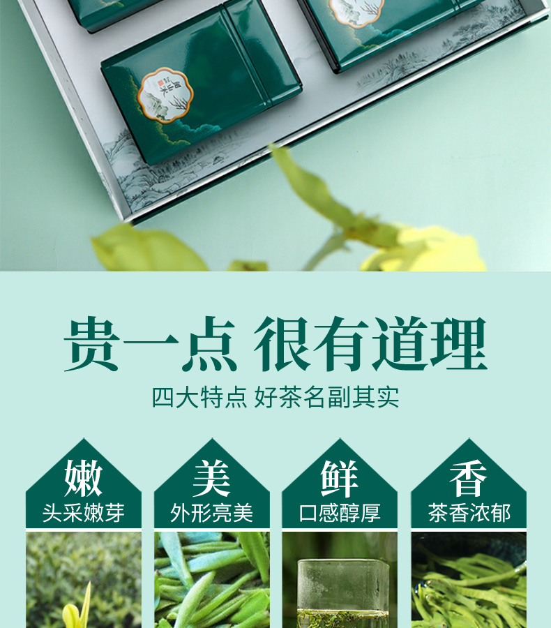 茗山生态茶 碧螺春茶明前绿茶 茶叶礼盒4罐装共500g 单位:盒 绿色