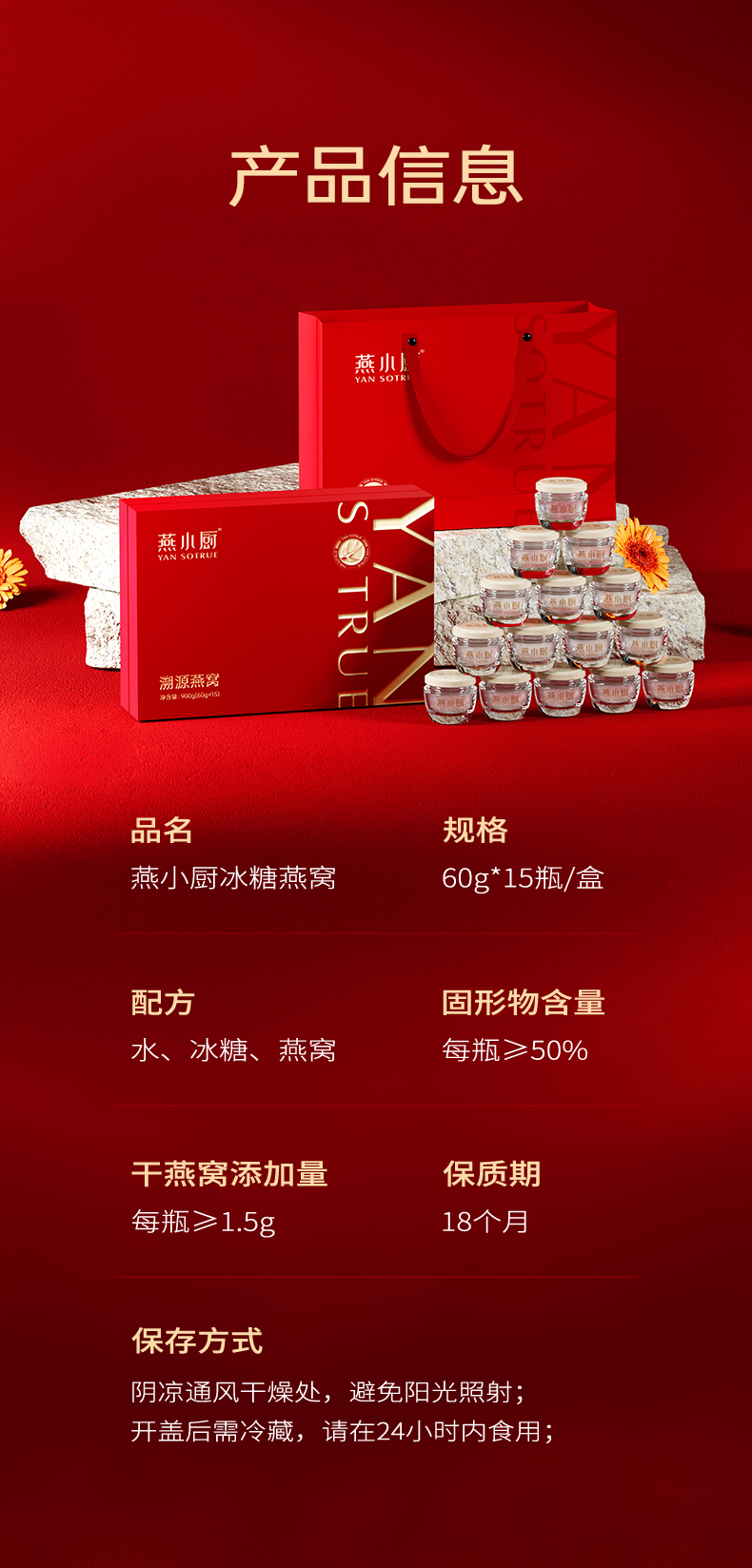 燕小厨 冰糖燕窝 即食燕窝 60g*15瓶 红色(单位:盒)