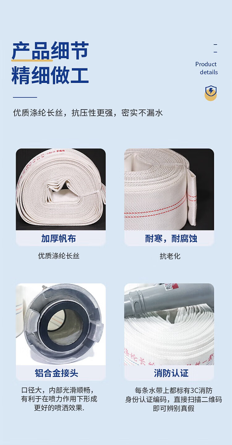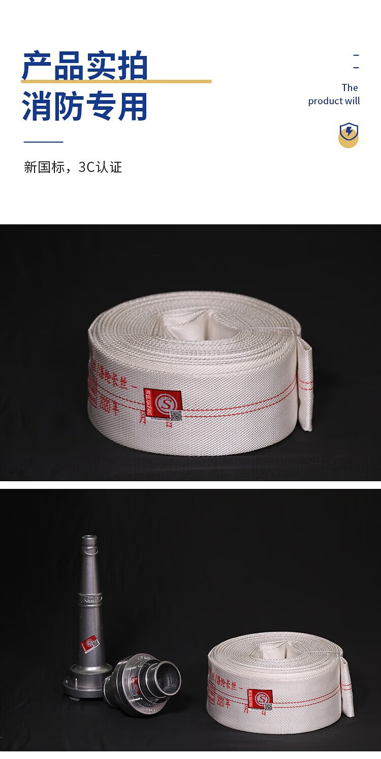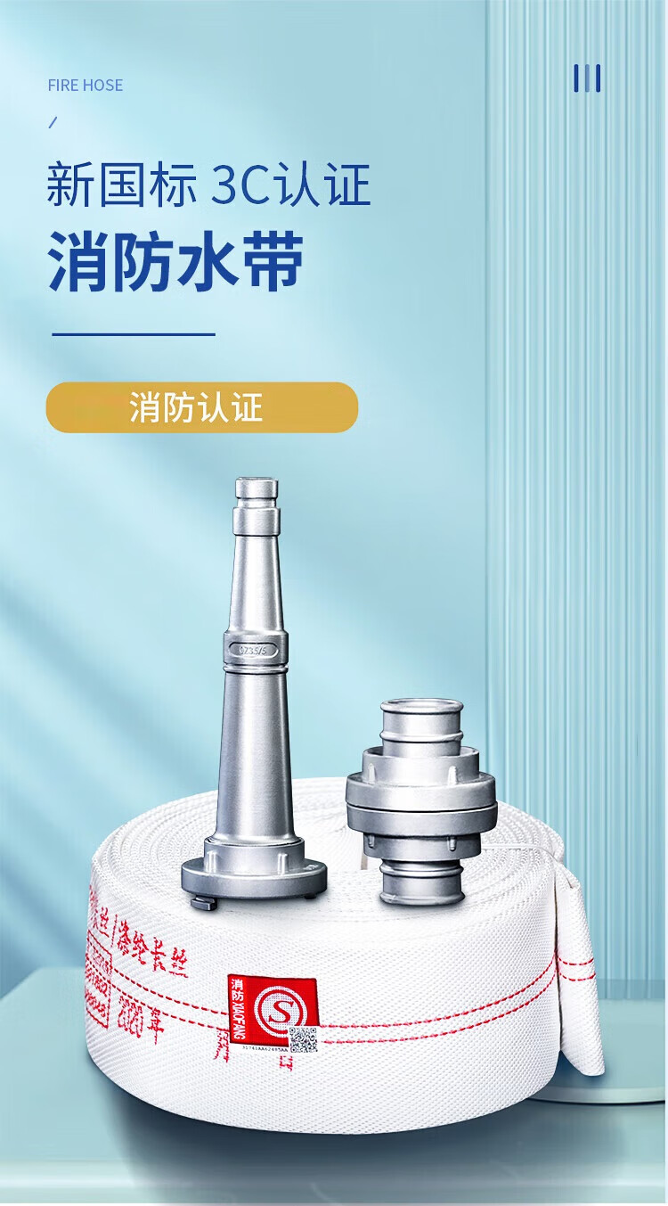 鸣固 龙涛消防水带消防器材16-65-25消防认证水管25m水带+接扣(单位:根) 白色