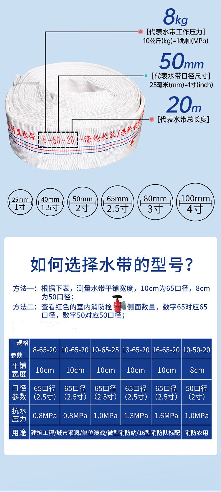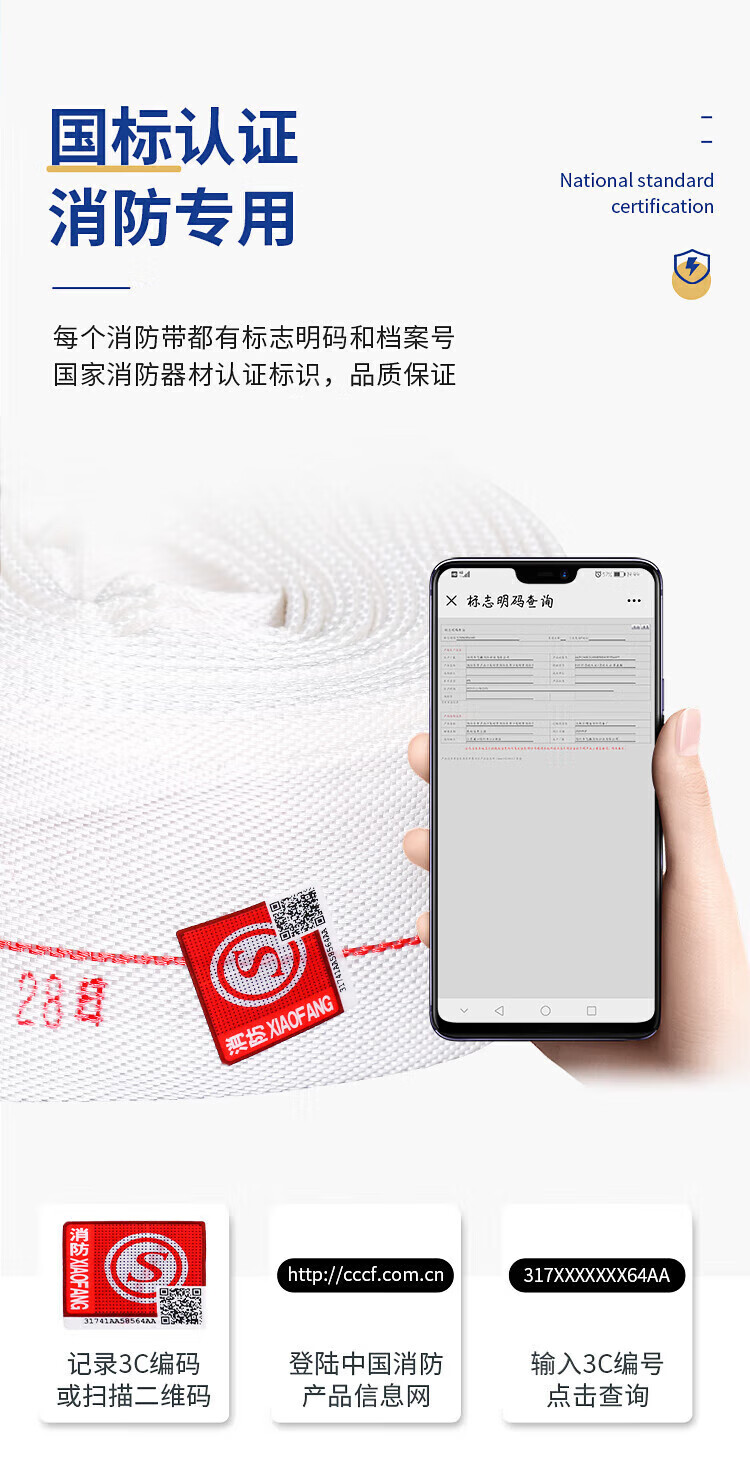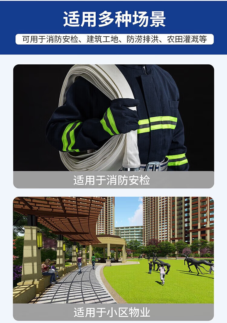鸣固 龙涛消防水带消防器材16-65-25消防认证水管25m水带+接扣(单位:根) 白色