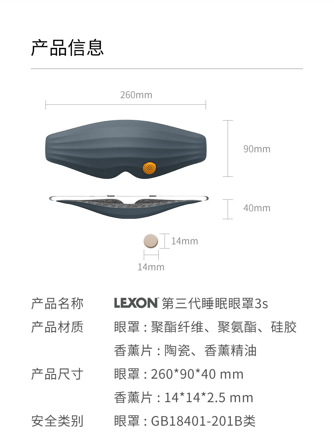 LEXON(乐上)香薰眼罩LT011G(单位:个)灰色 深空灰