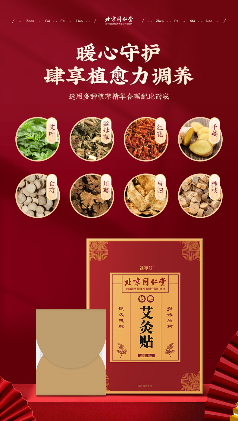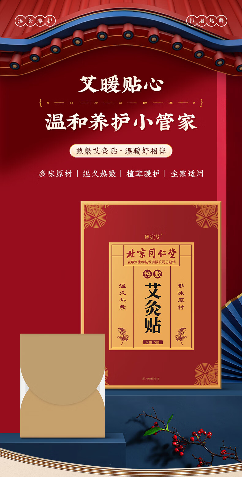 同仁堂(TRT)热敷艾灸贴5贴*1盒(单位:盒) 红色