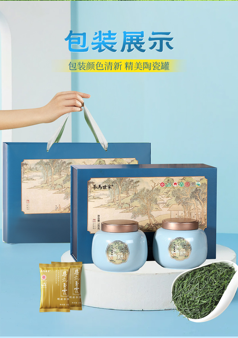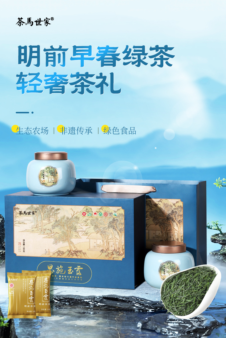 茶马世家 明前一级恩施玉露绿茶 HZ0200JY春华商务礼盒 180g/盒 蓝色(单位:盒)