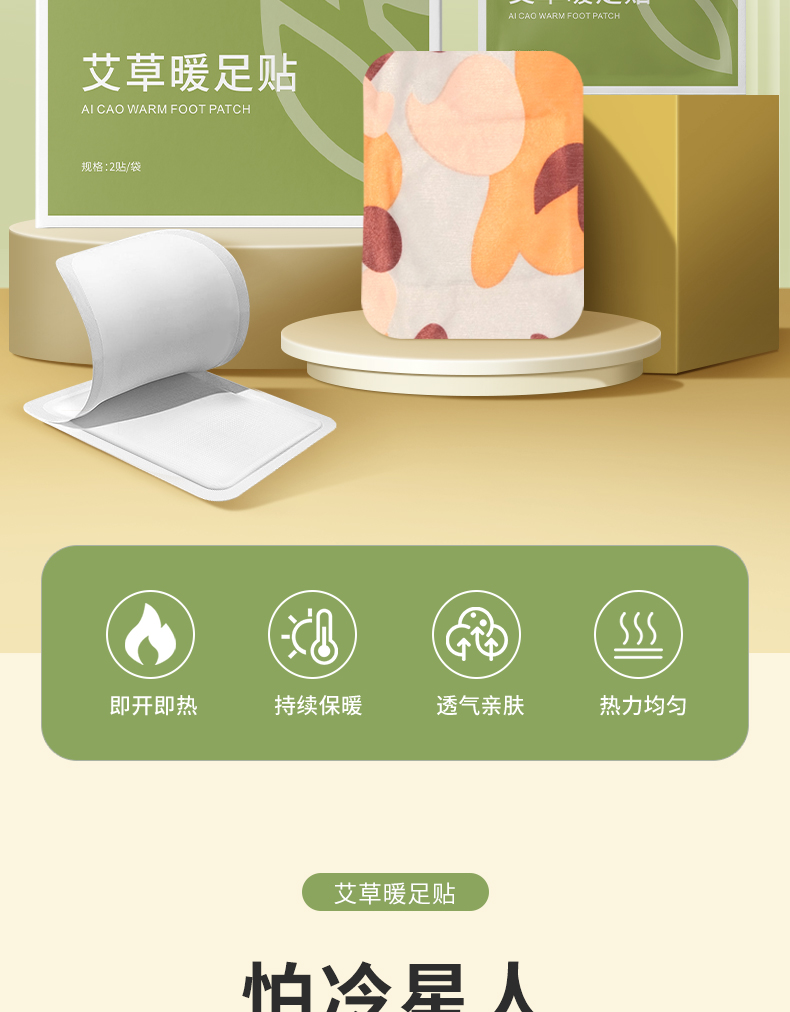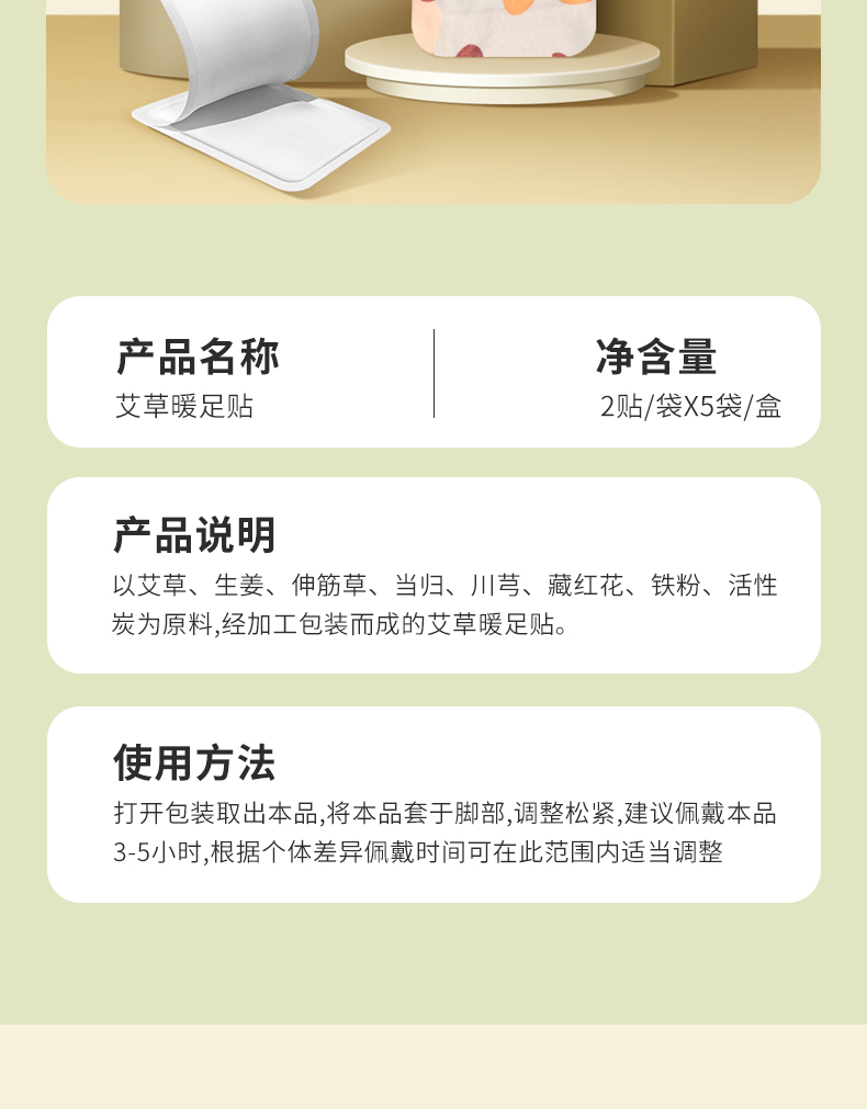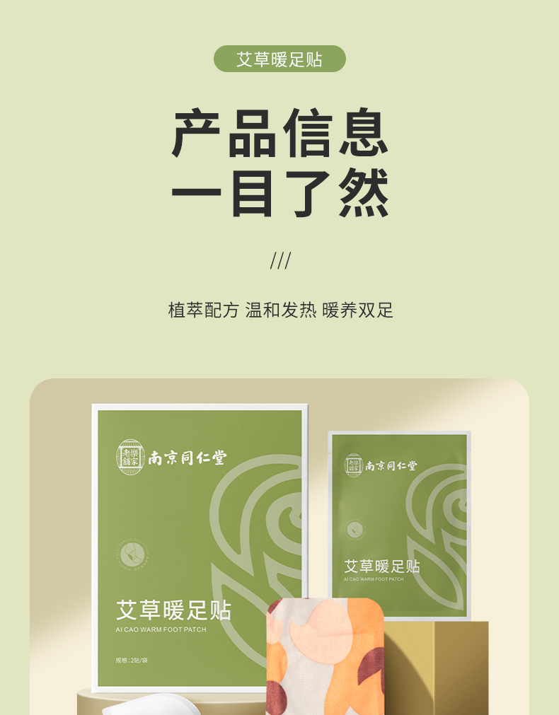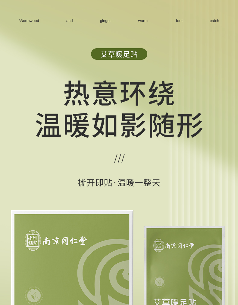 同仁堂(TRT) 发热自热 艾无量艾草暖足贴 2贴/袋*5袋/盒 绿色(单位:盒)
