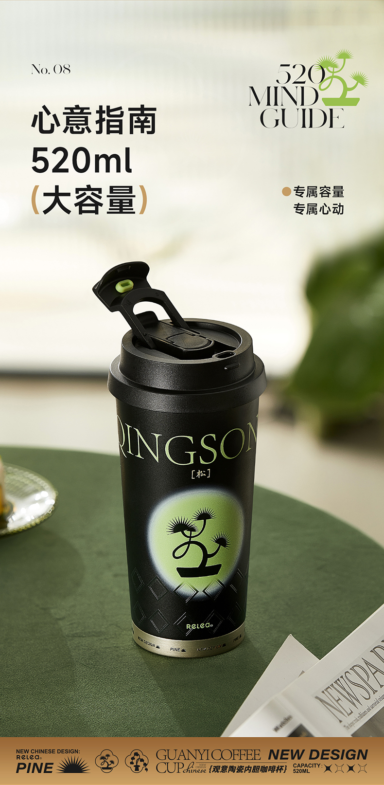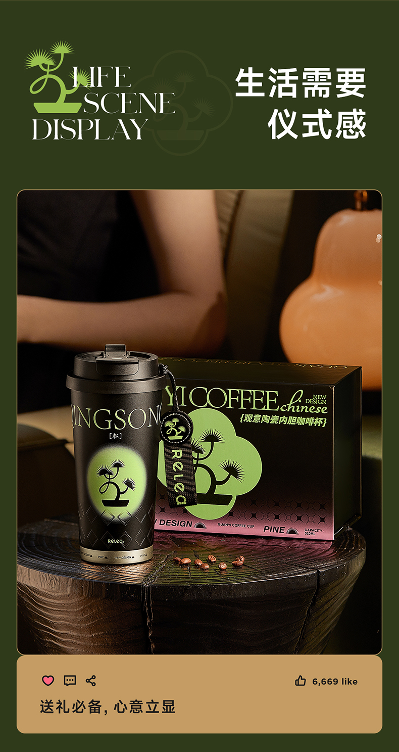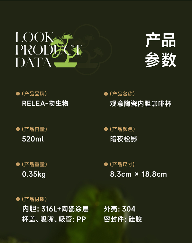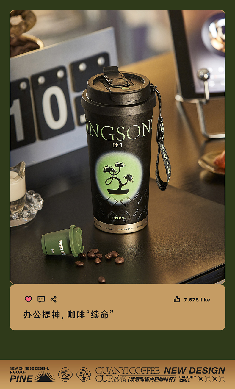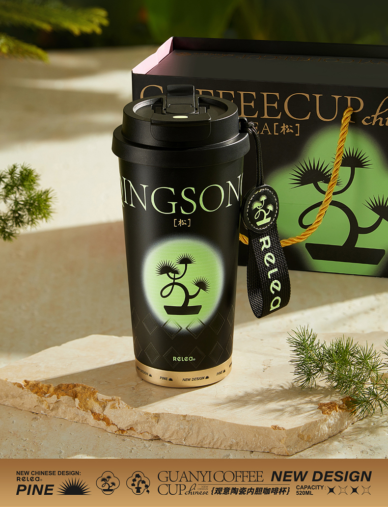 物生物(RELEA)观意陶瓷内胆咖啡杯520ML JV012381 单位:个 粉黛兰梦