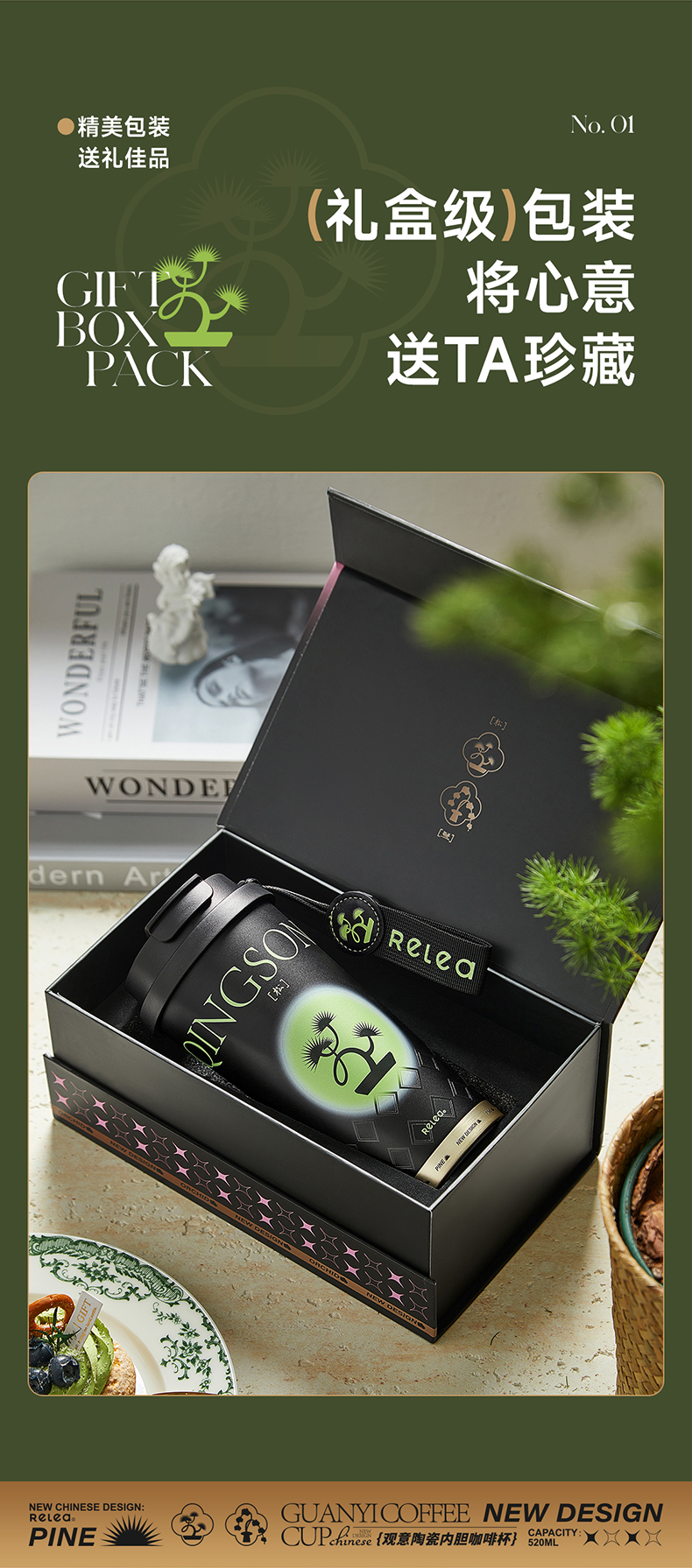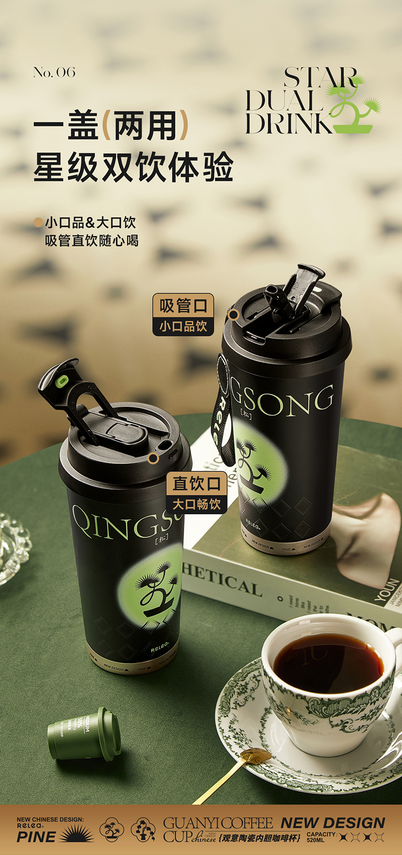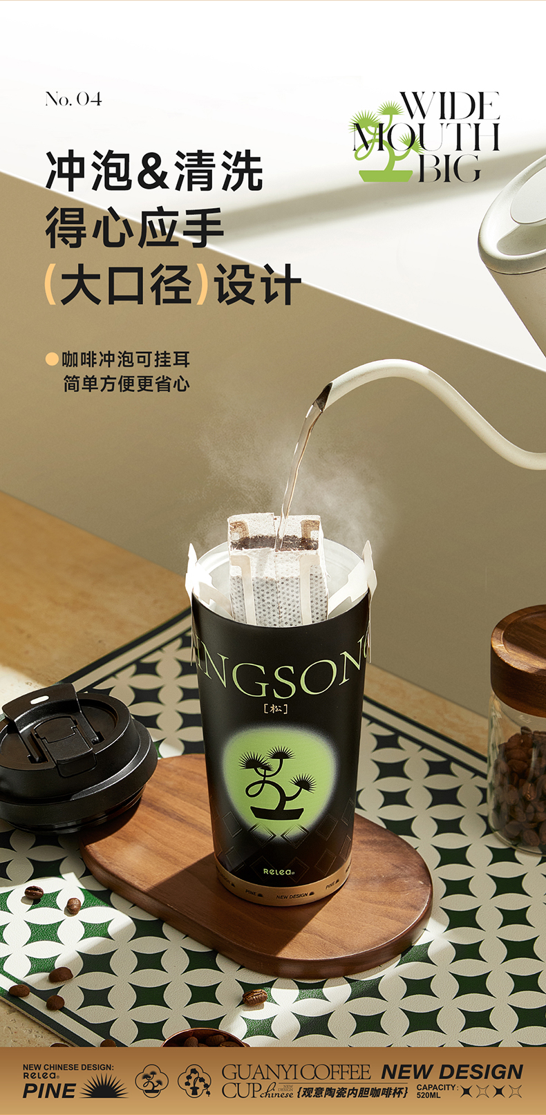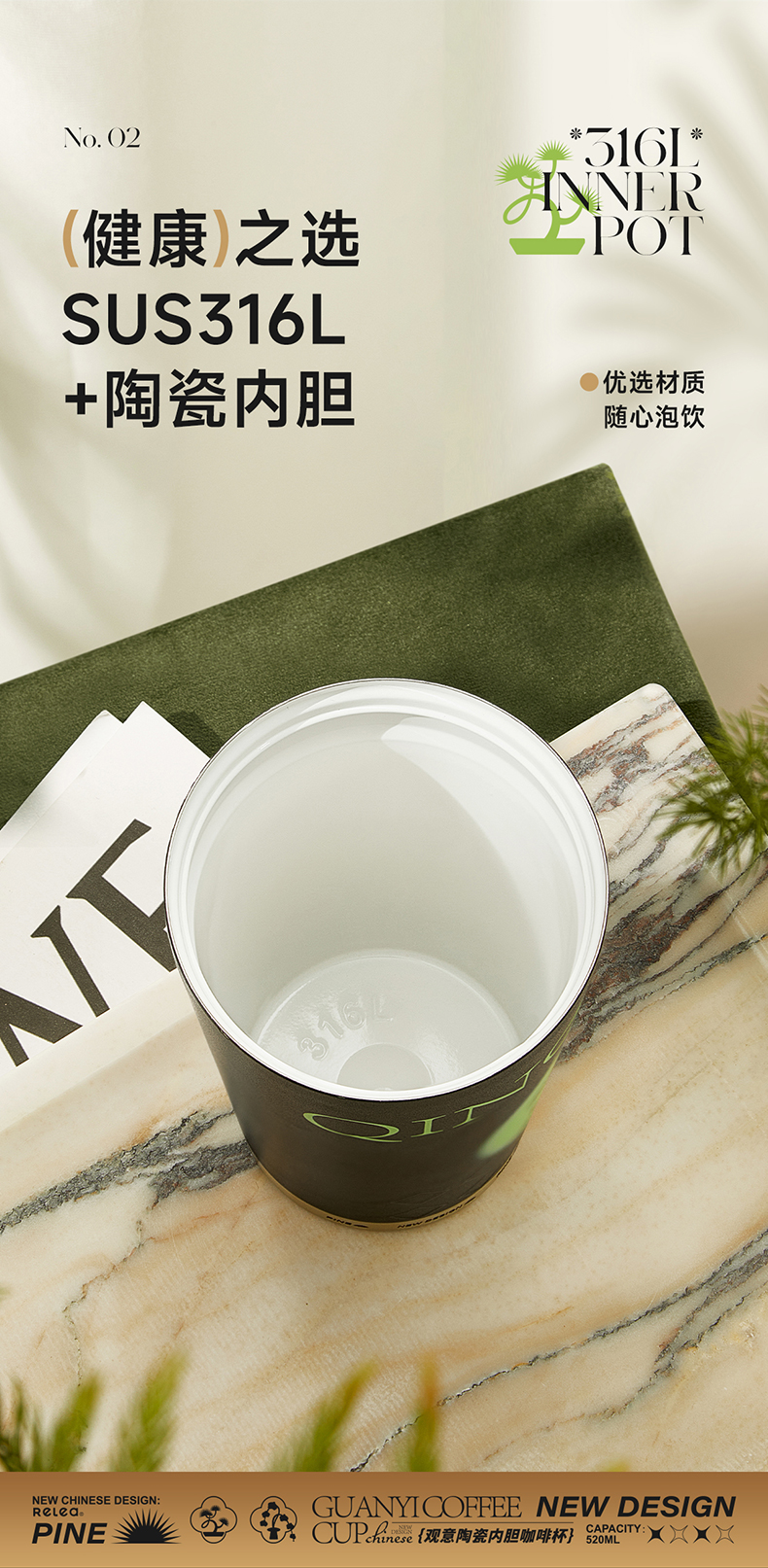 物生物(RELEA)观意陶瓷内胆咖啡杯520ML JV012381 单位:个 粉黛兰梦