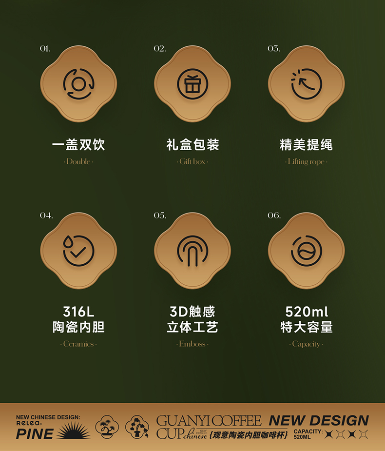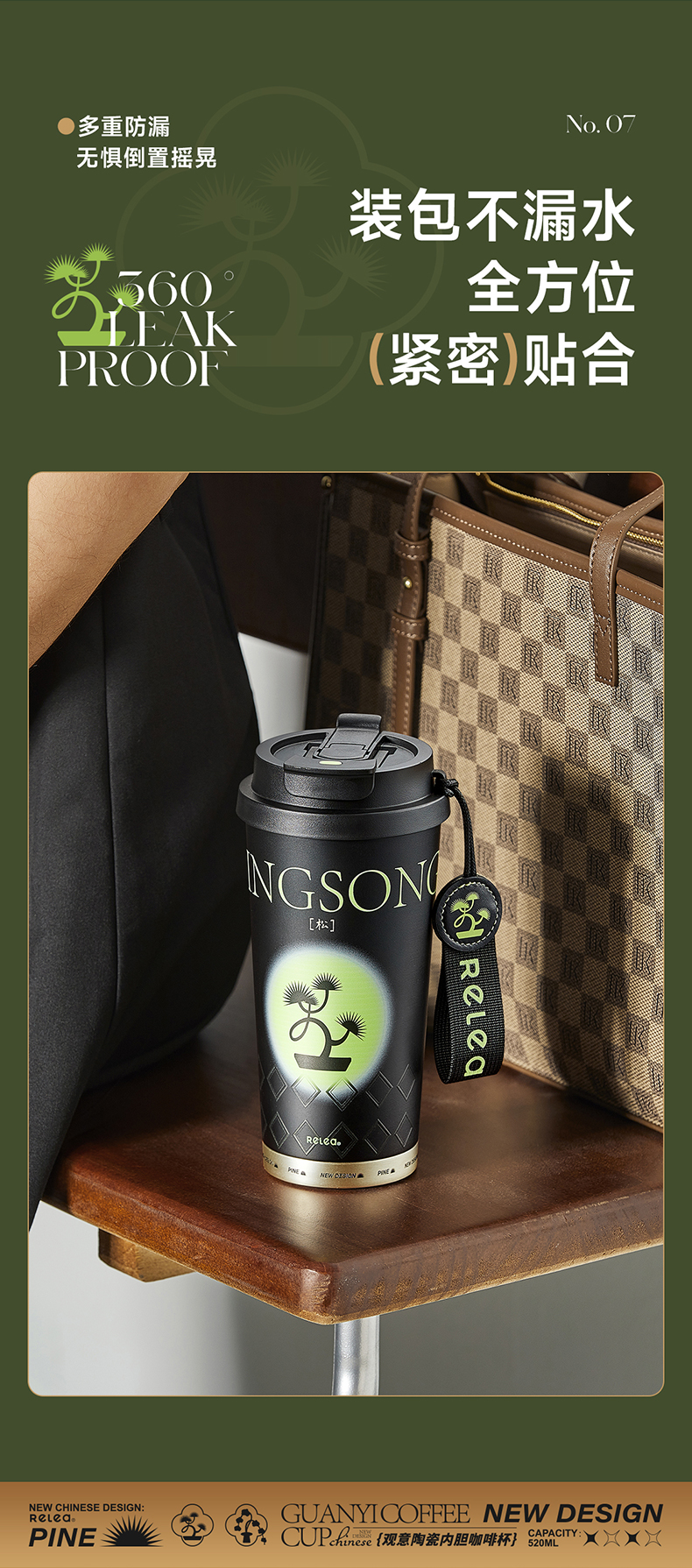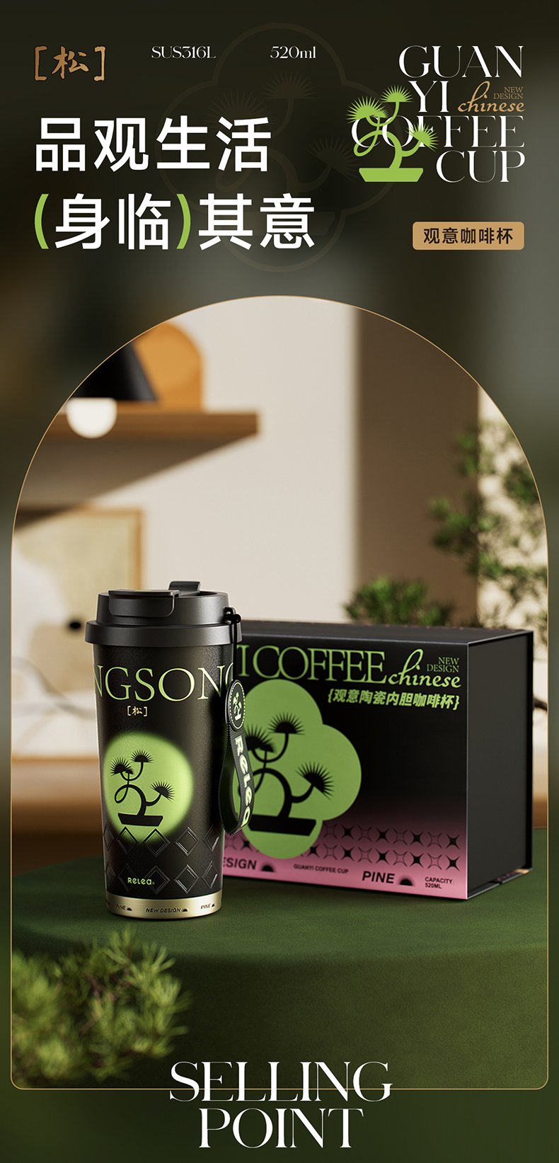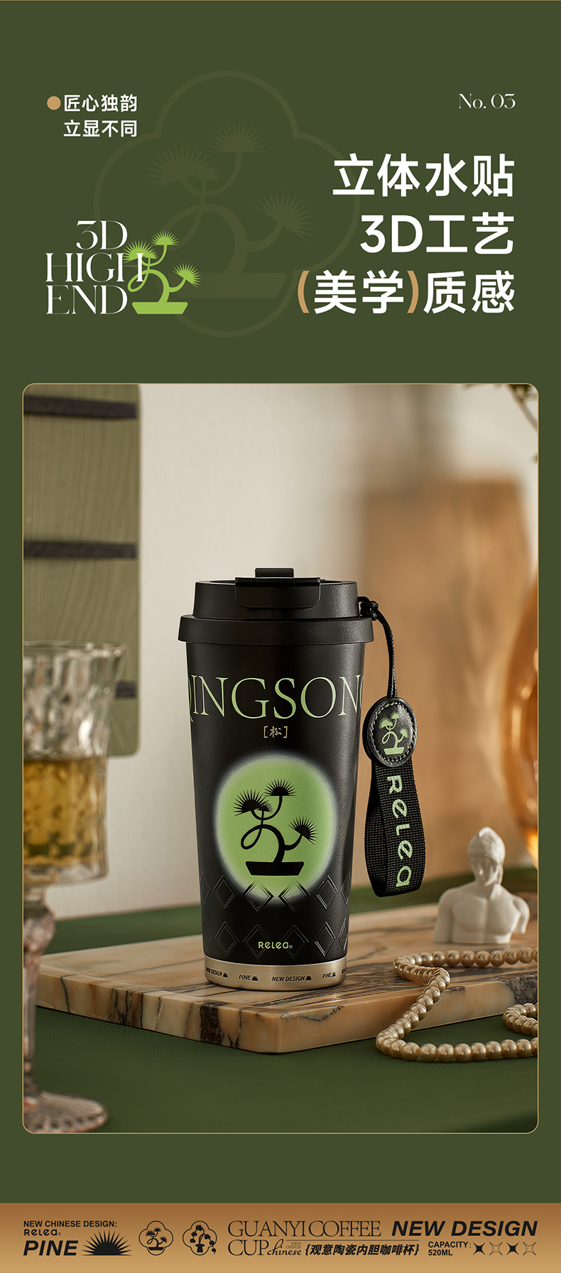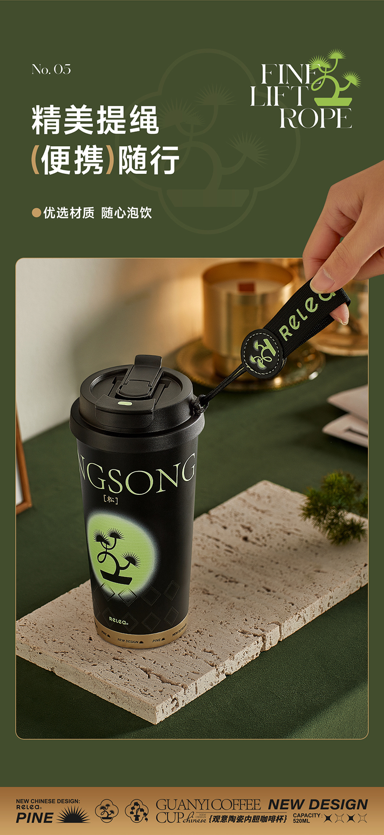 物生物(RELEA)观意陶瓷内胆咖啡杯520ML JV012381 单位:个 粉黛兰梦