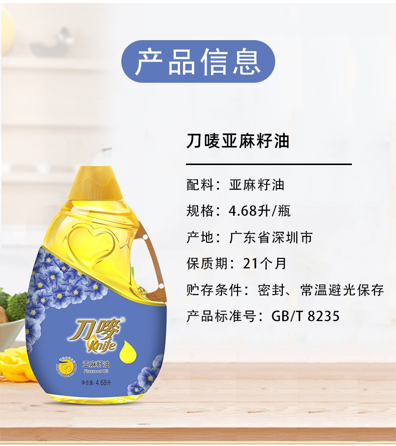 刀唛(Knife)亚麻籽油4.68L/瓶 浅蓝色