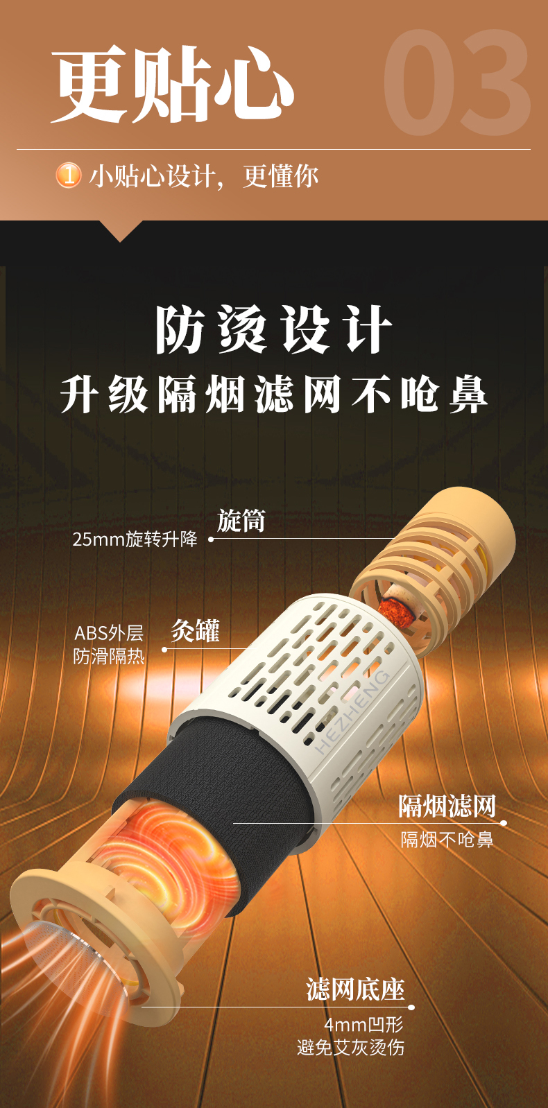 和正(HEZHENG)无烟艾灸罐 随身灸养生小筒灸小悬灸 艾灸罐两只装HZ-AJG-2(单位:套) 奶油咖