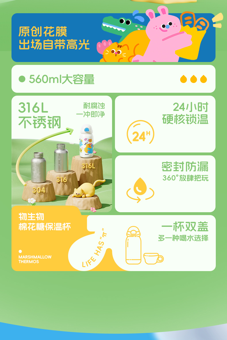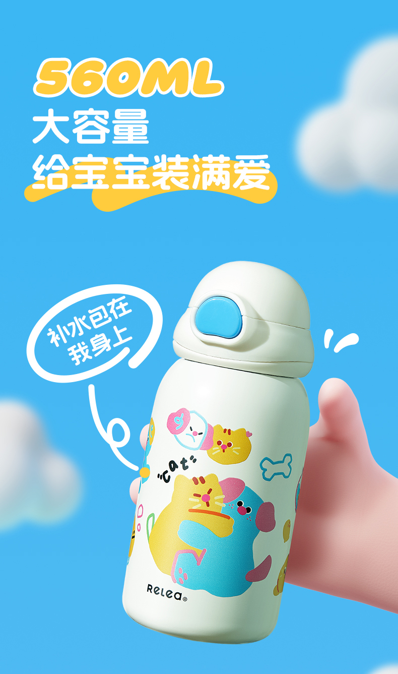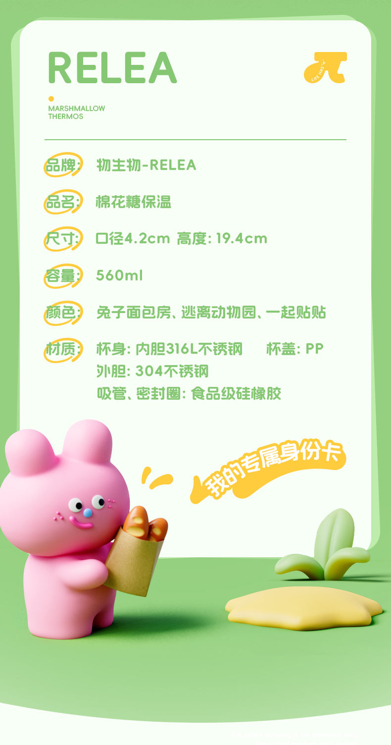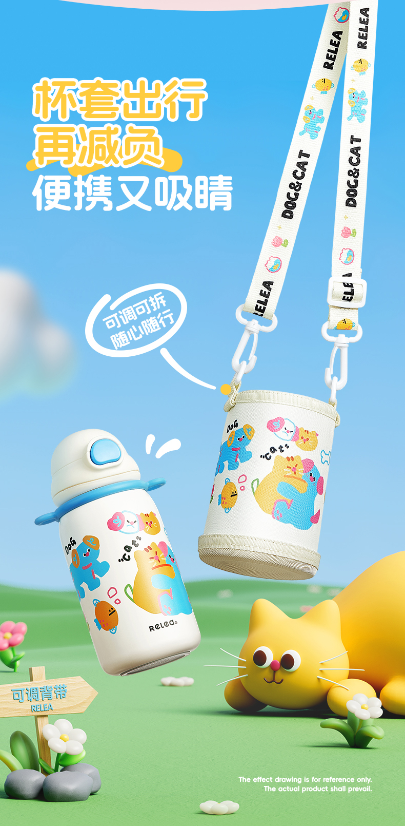 物生物(RELEA)棉花糖保温杯560ml-(单杯不含杯套含背带) JV012452 单位:个 逃离动物园