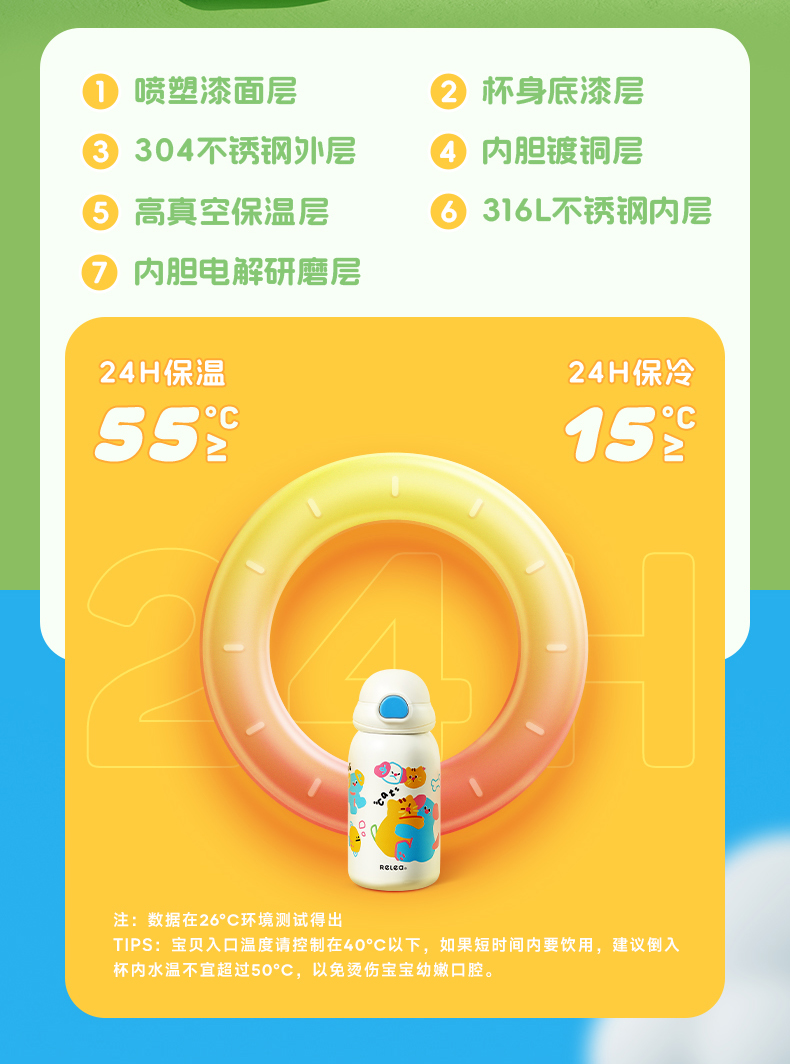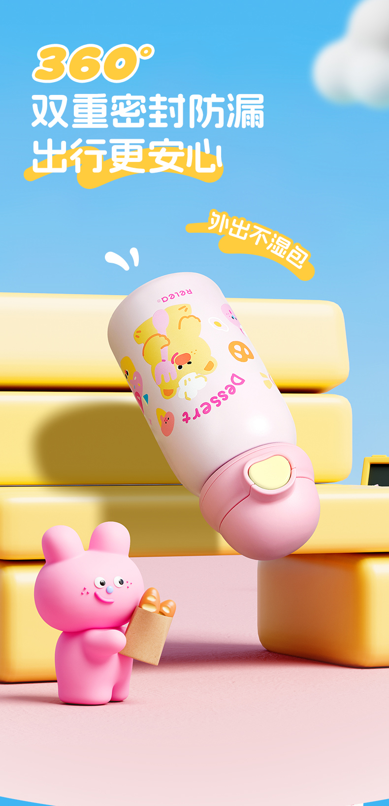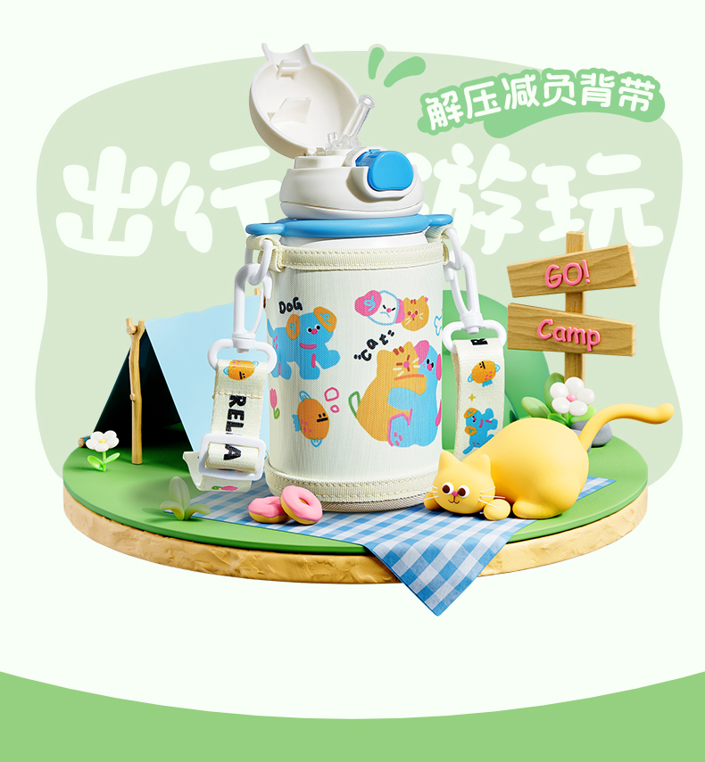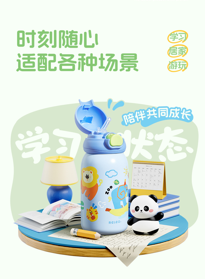 物生物(RELEA)棉花糖保温杯560ml-(单杯不含杯套含背带) JV012452 单位:个 逃离动物园