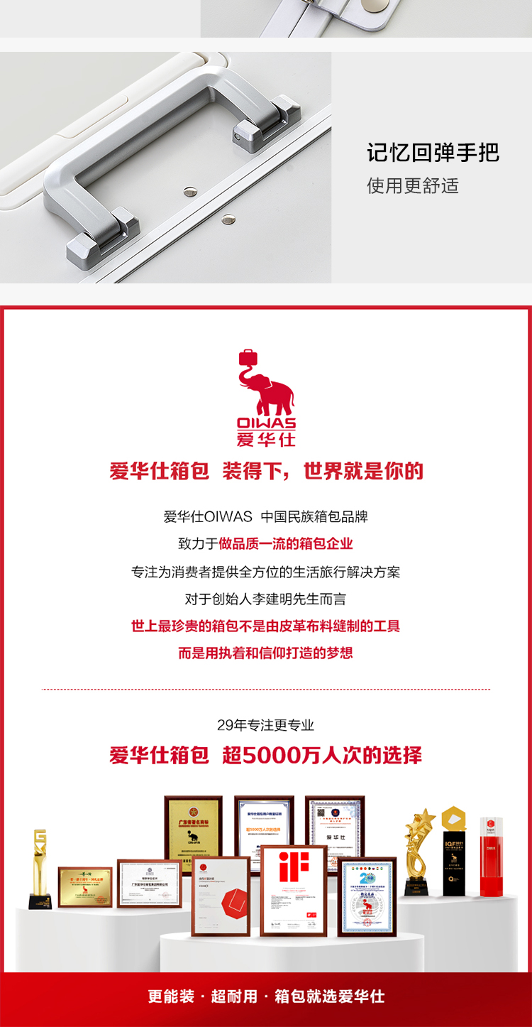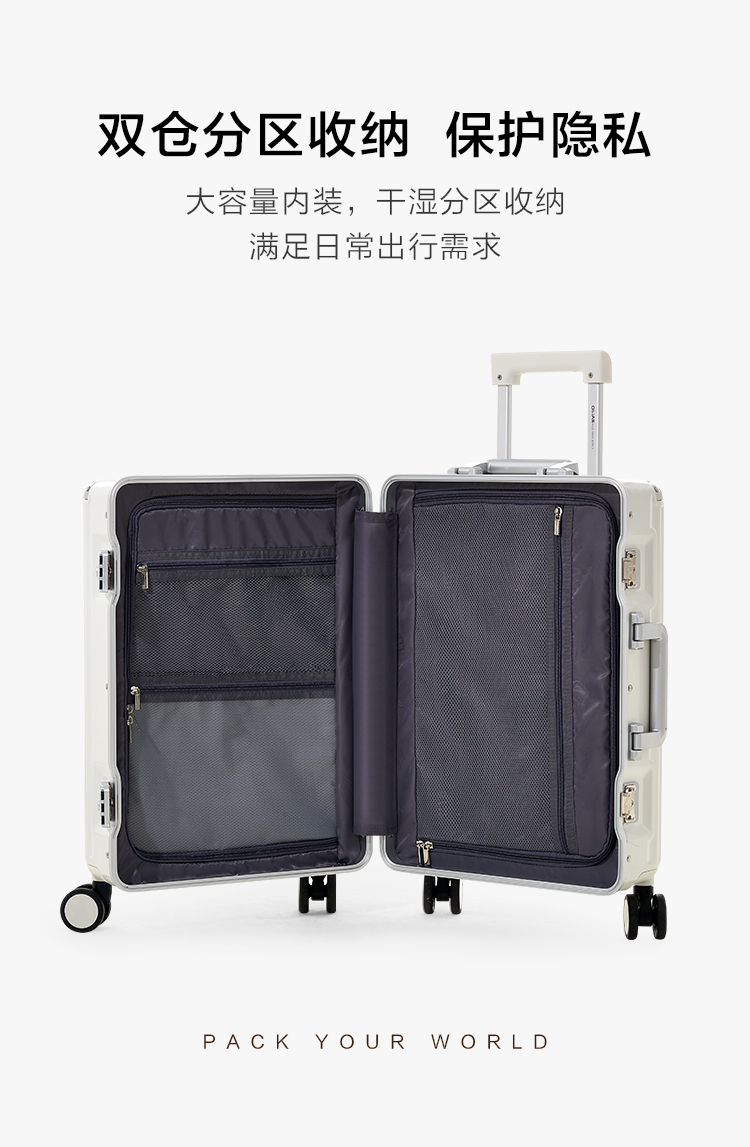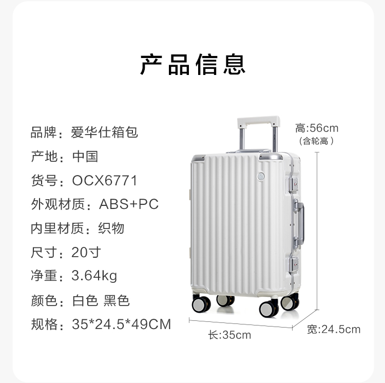 爱华仕(OIWAS) 铝框拉杆箱 磨砂防刮 四角金属防撞登机箱OCX6771-20(单位:个) 白色