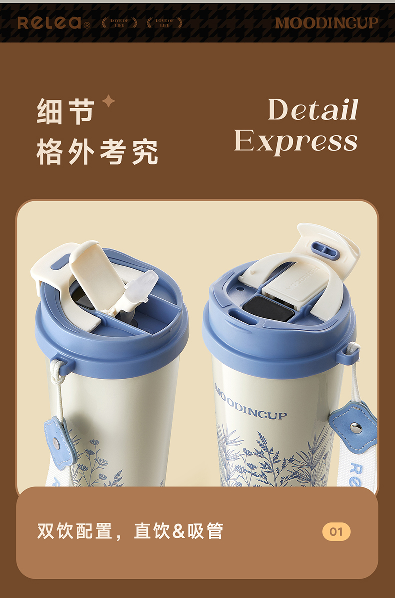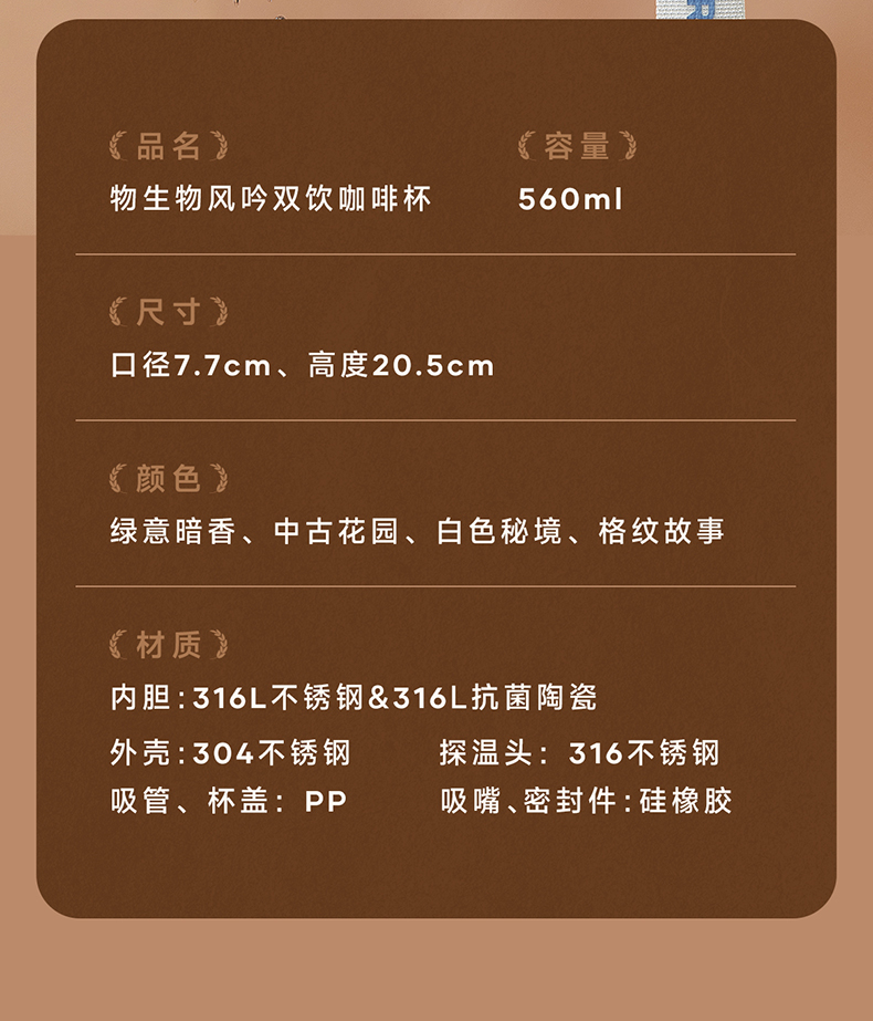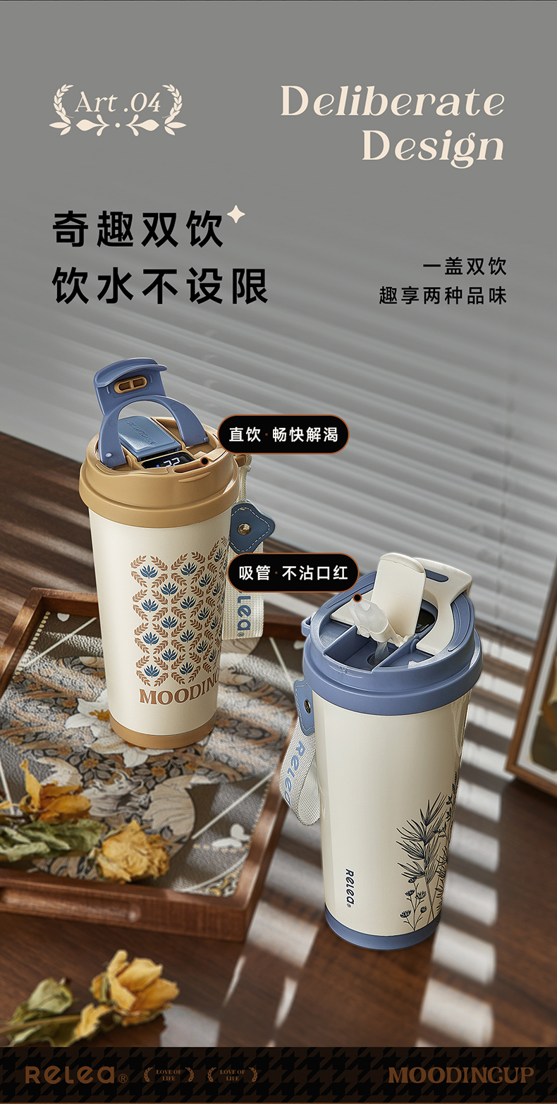 物生物(RELEA)风吟双饮陶瓷咖啡杯560ML(数显款) JV012451 单位:个 中古花园