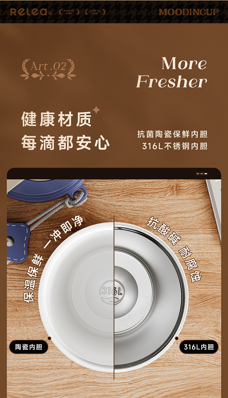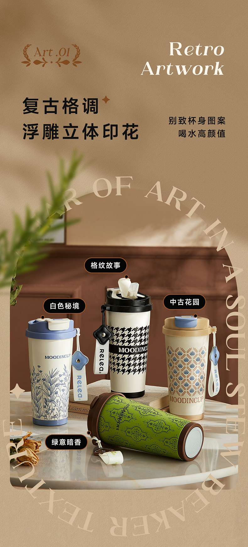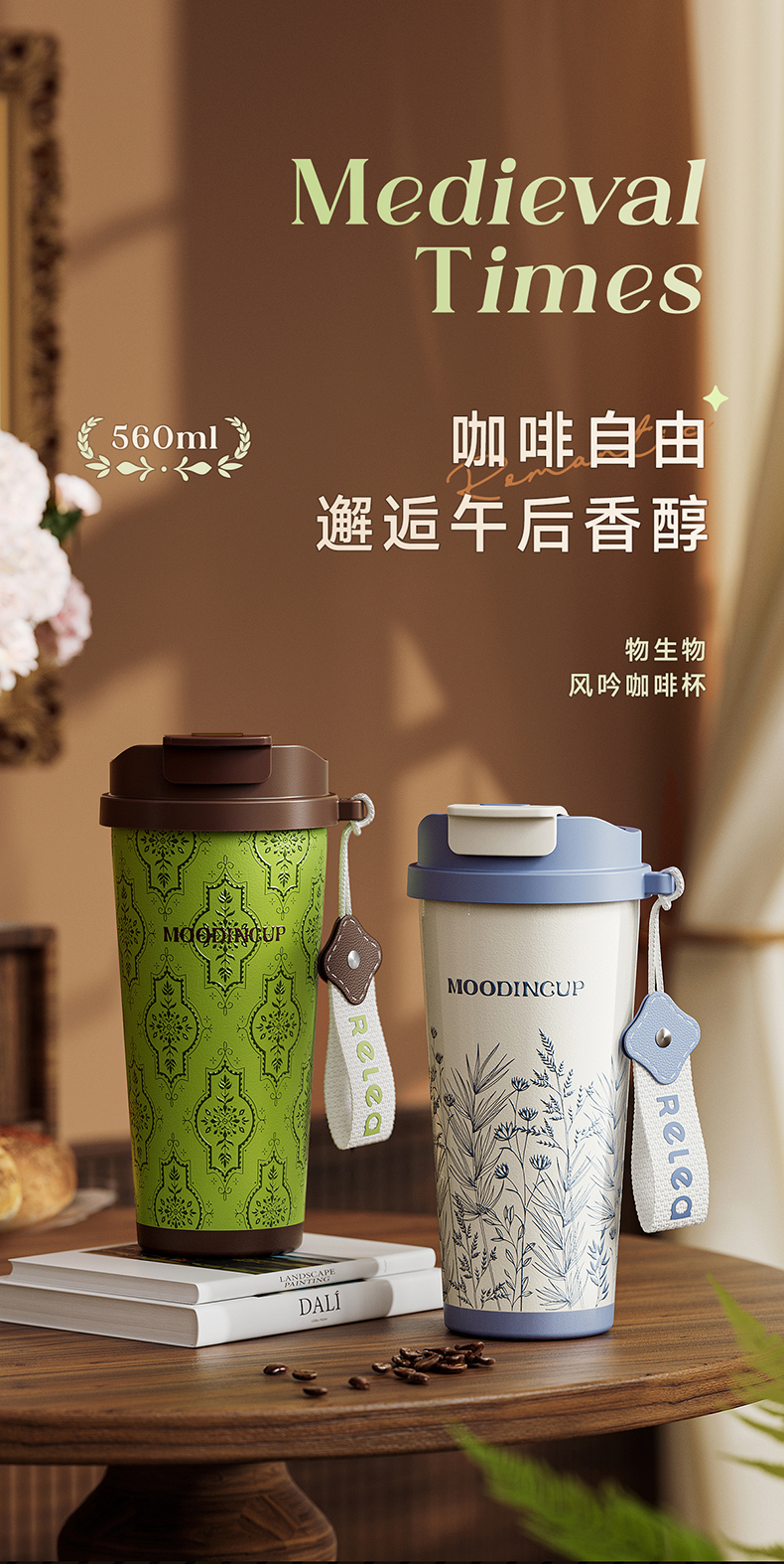 物生物(RELEA)风吟双饮陶瓷咖啡杯560ML(数显款) JV012451 单位:个 中古花园