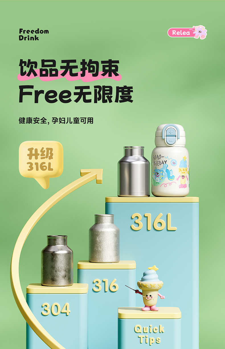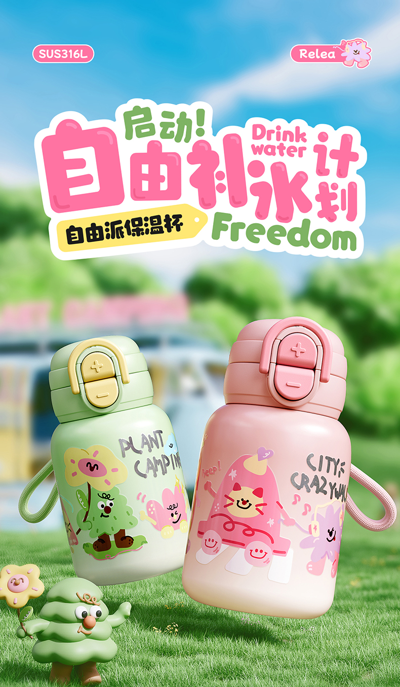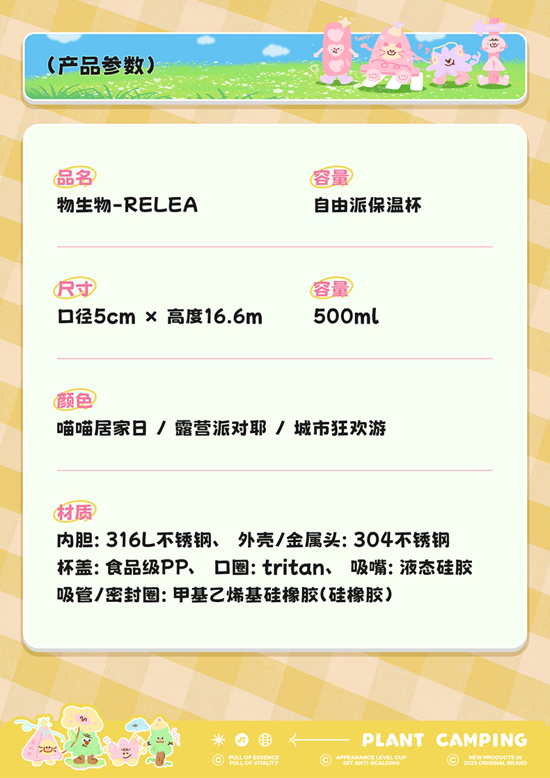 物生物(RELEA)自由派保温杯500ML JV012461 单位:个 露营派对耶