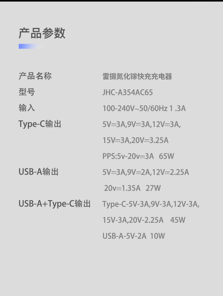 雷摄(LEISE) JHC-AC345AC65 65w 充电头 白色(单位:个)