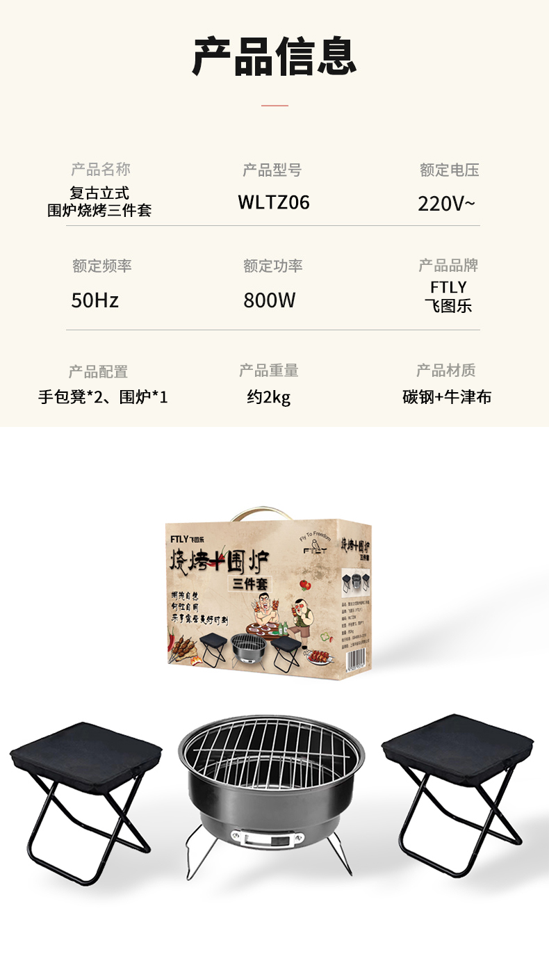 飞图乐(FTLY)复古立式围炉烧烤三件套WLTZ06(单位:套) 黑色