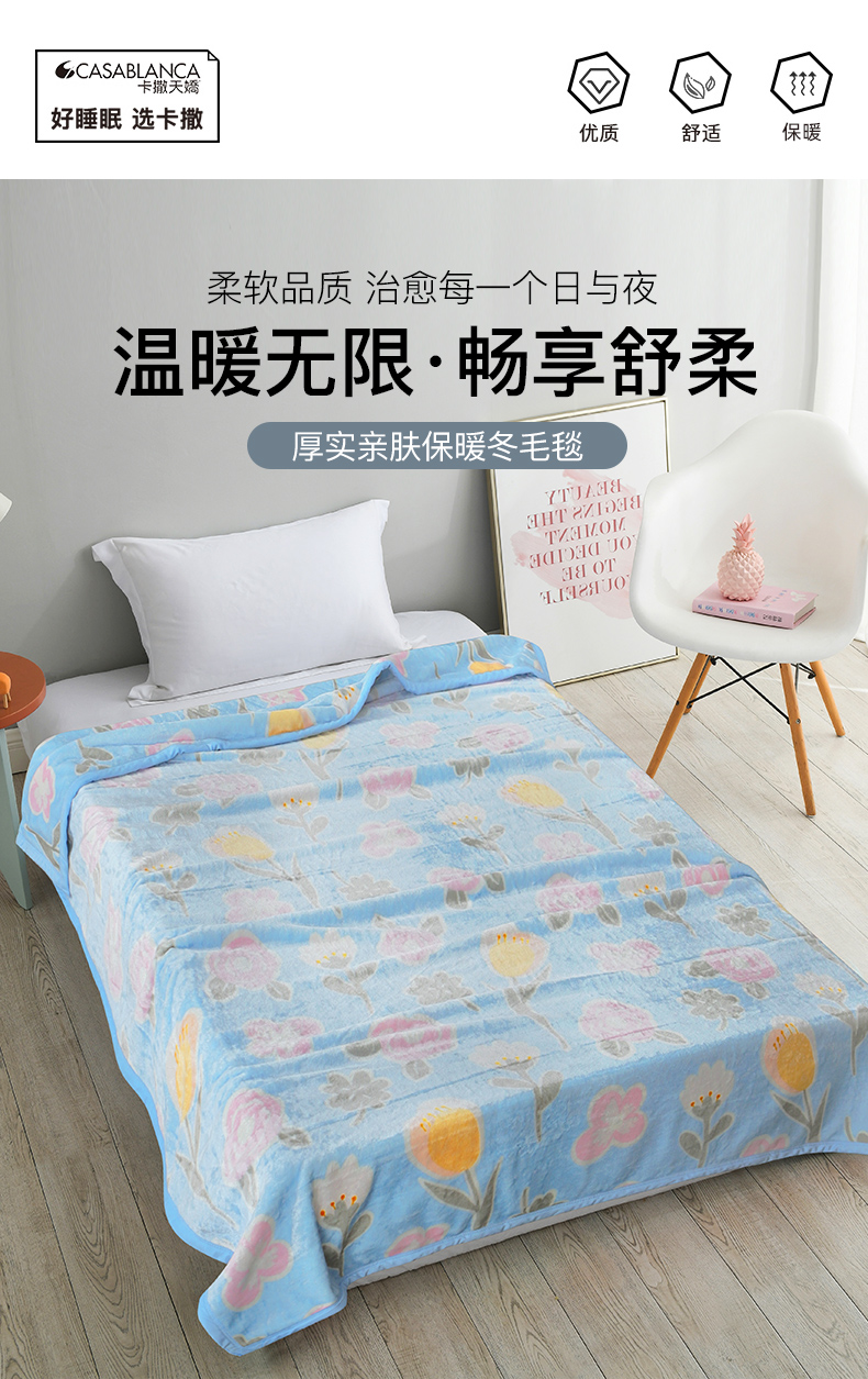 卡撒天娇(CASABLANCA)家纺 冬印花毛毯150*200cm/1400g(单位/床) 深蓝色