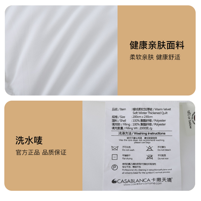 卡撒天娇(CASABLANCA)家纺 暖绒柔软冬厚被(单位/床) 本白色 200*230cm