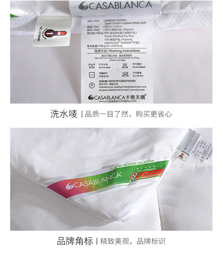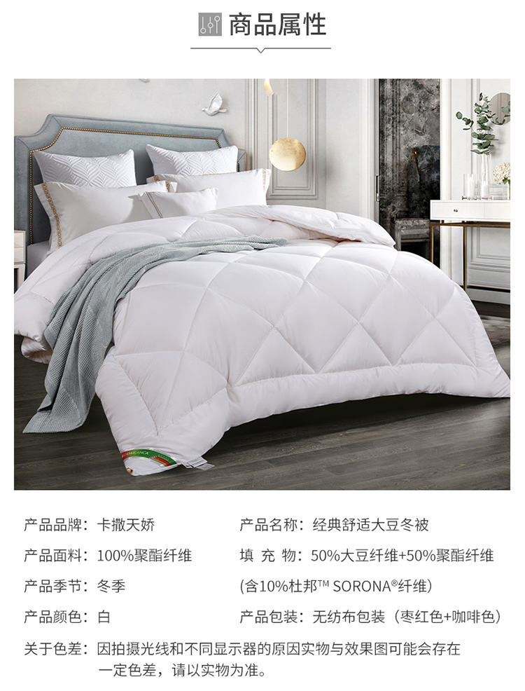 卡撒天娇(CASABLANCA)家纺 经典舒适大豆冬被(单位/床) 本白色 203*225cm