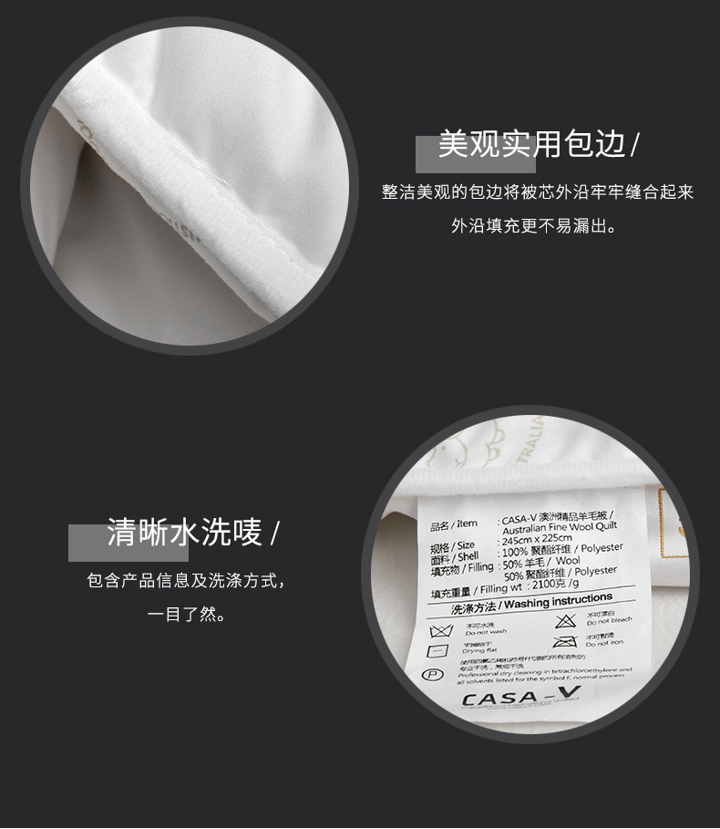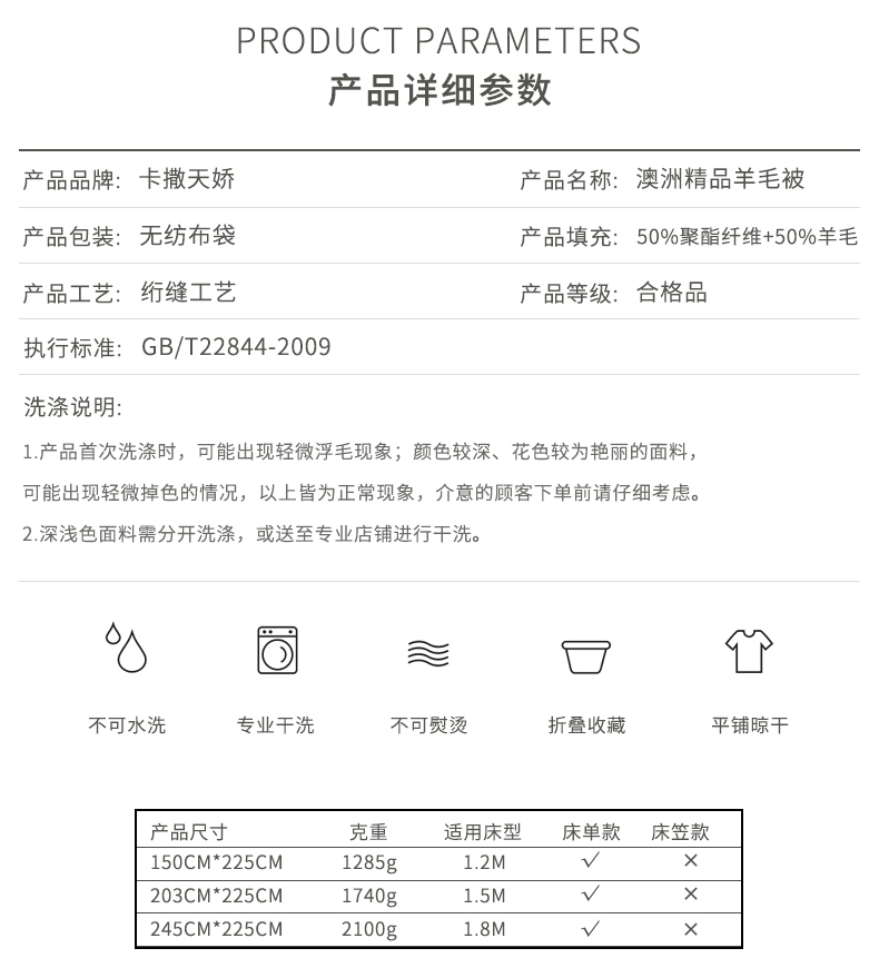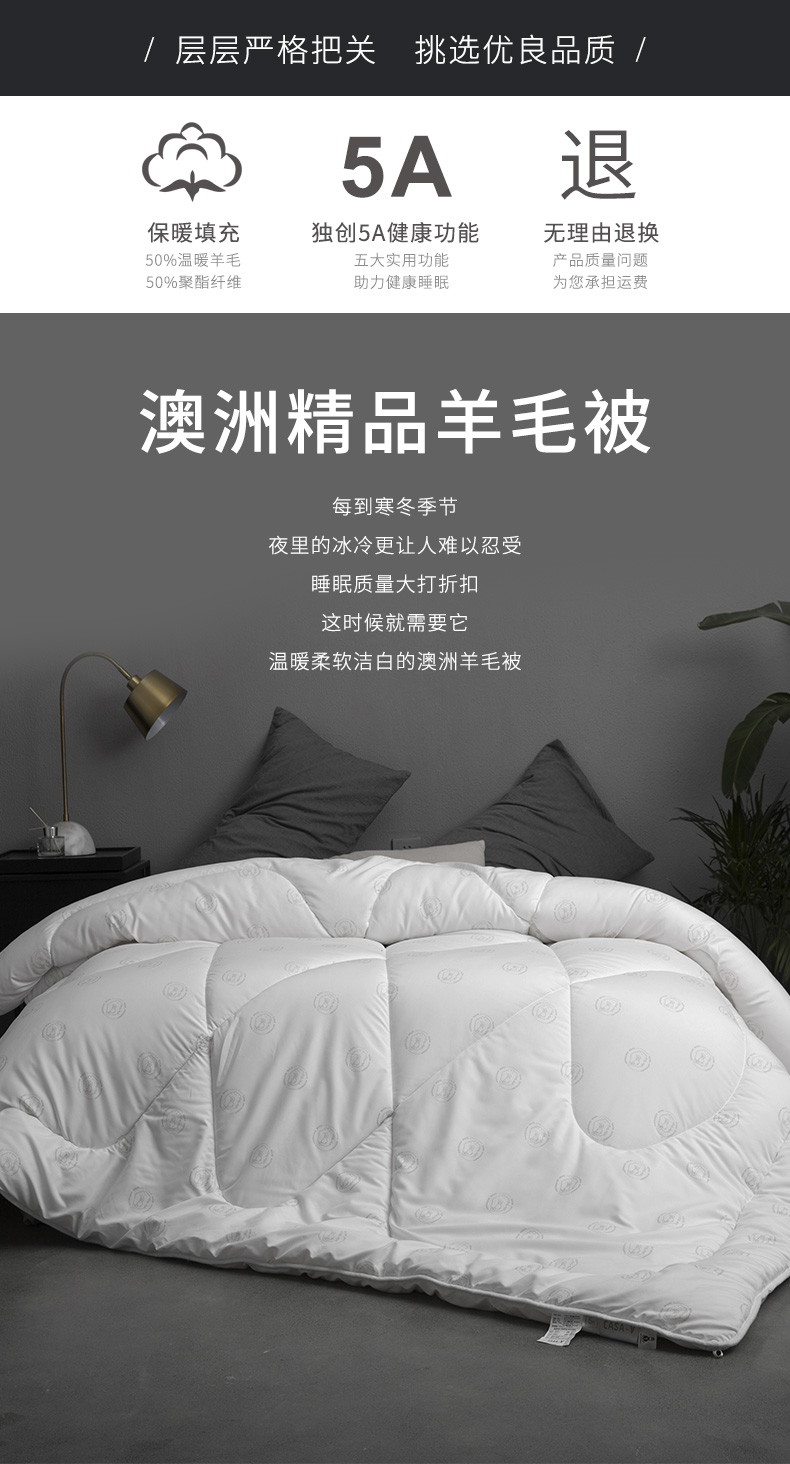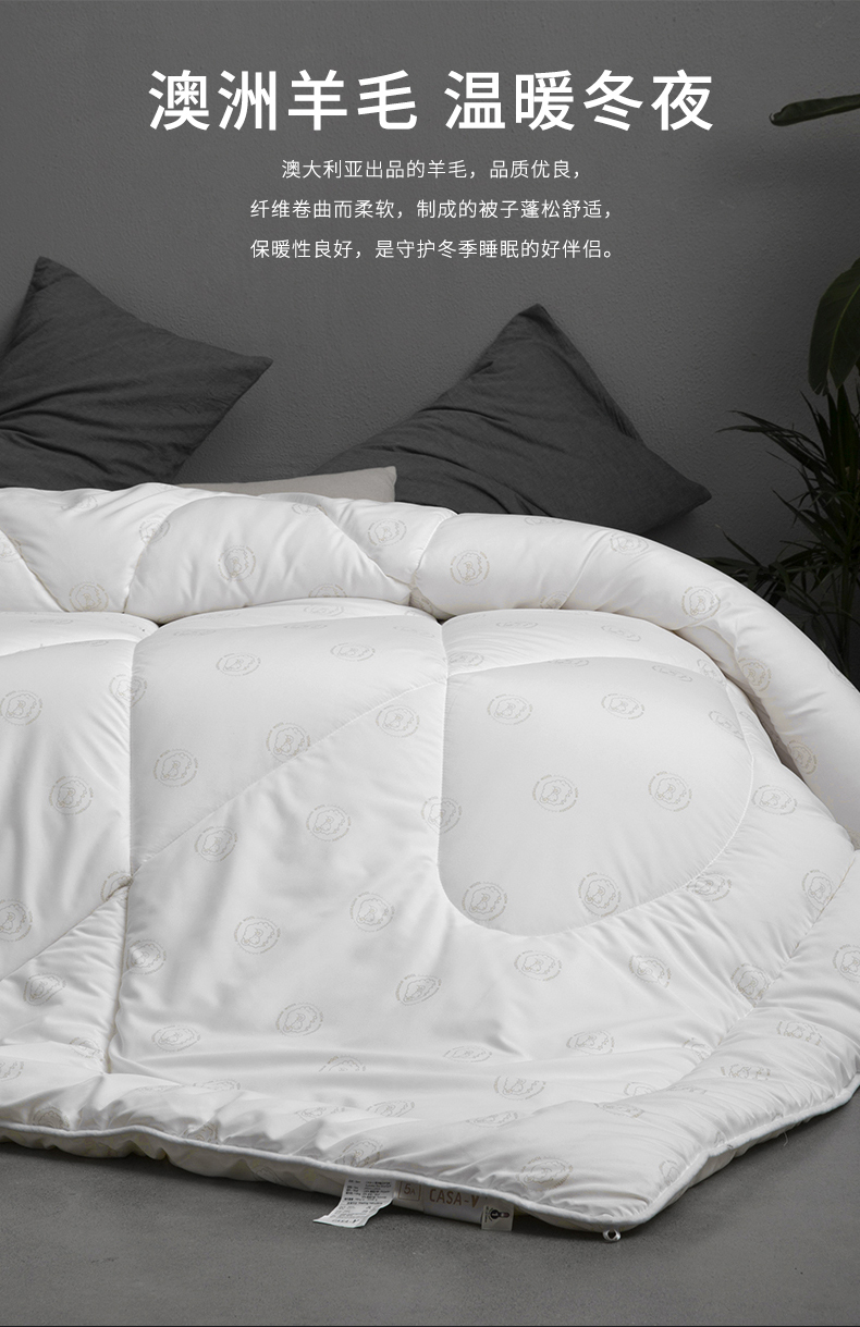 卡撒天娇(CASABLANCA) Casa-V(5A级抗菌防螨防霉)澳洲精品羊毛被(单位/床) 本白色 203*225cm