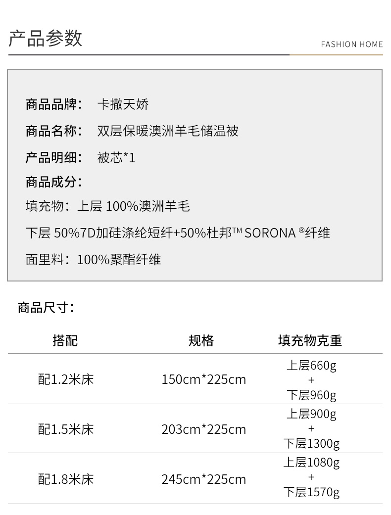 卡撒天娇(CASABLANCA)家纺 双层保暖澳洲羊毛储温被(单位/床) 本白色 203*225cm