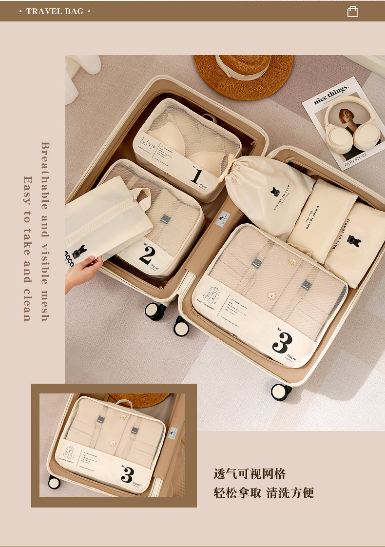 飞图乐(FTLY)旅行收纳包七件套SNTZ0101(单位:套) 暖沙色