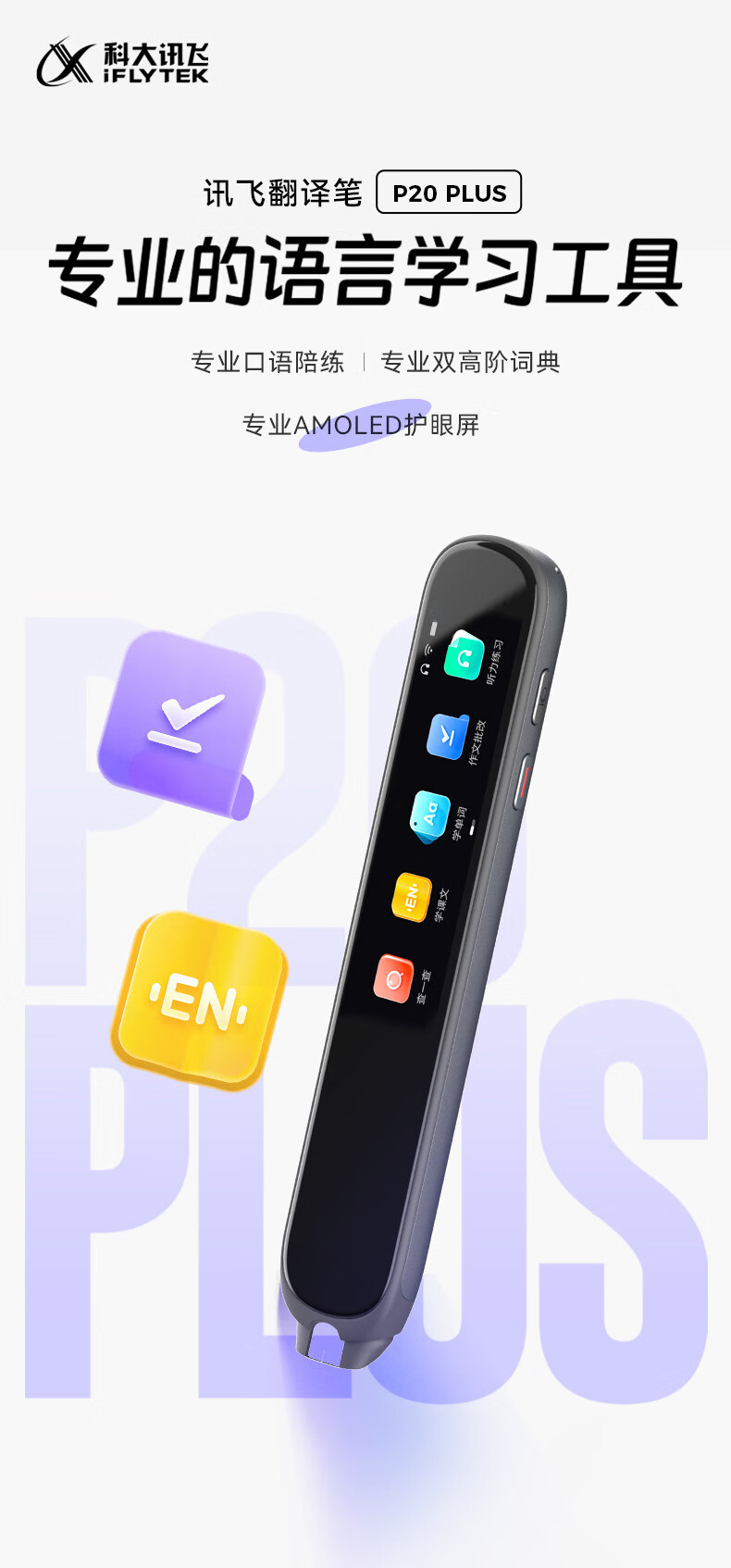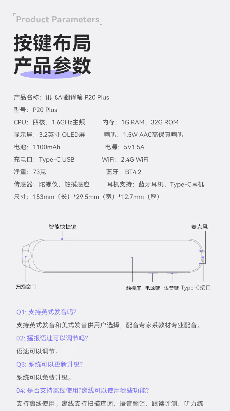 科大讯飞(iFLYTEK) P20Plus(32G)太空灰 P20 Plus(32G) AI翻译笔 太空灰(单位:台)