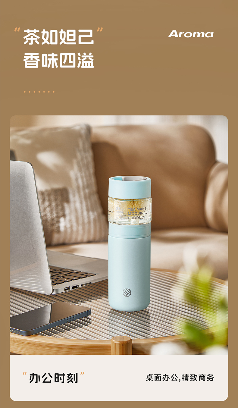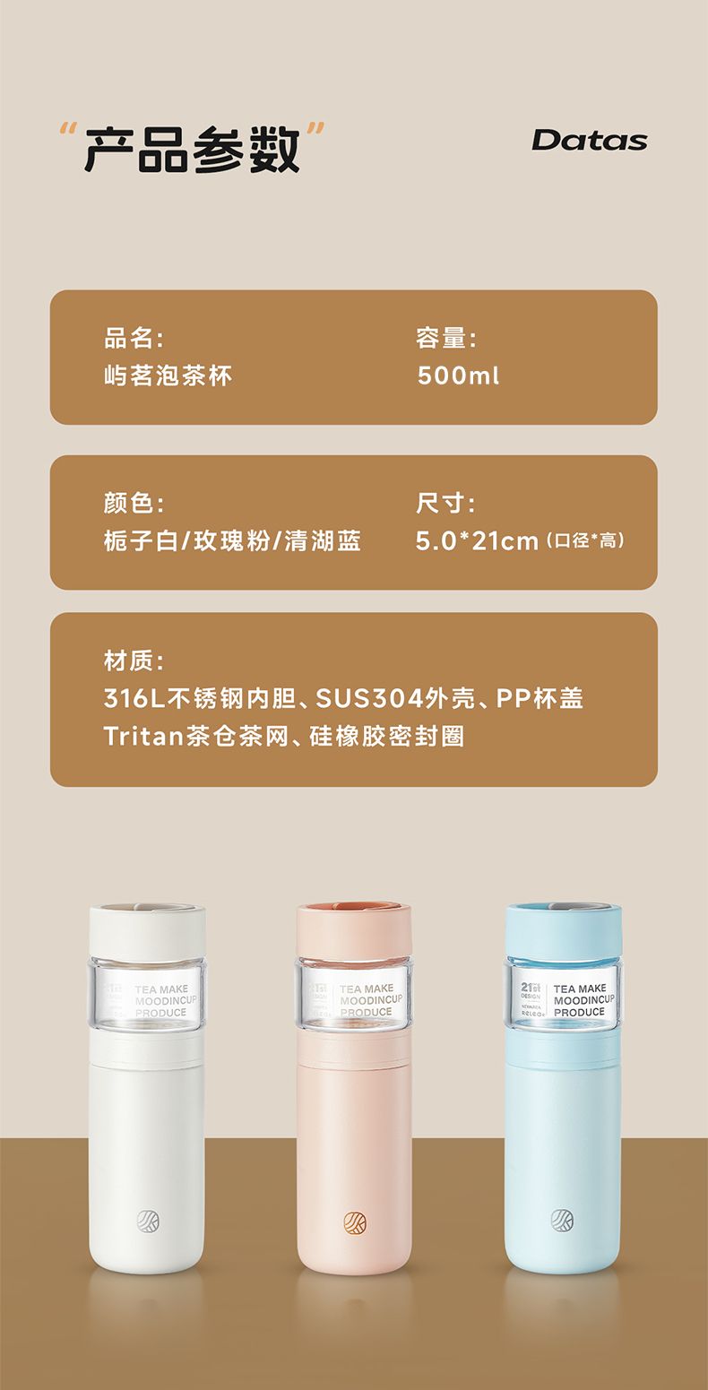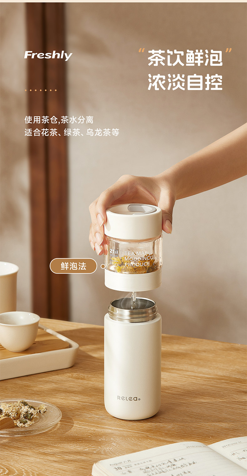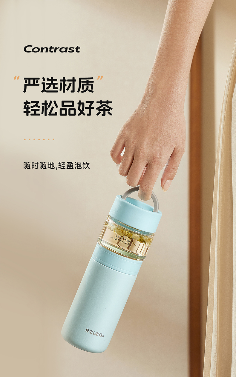 物生物(RELEA)屿茗泡茶杯350ML JV012463 单位:个 清湖蓝