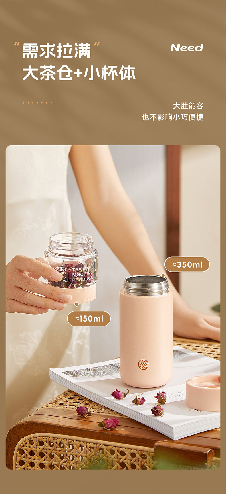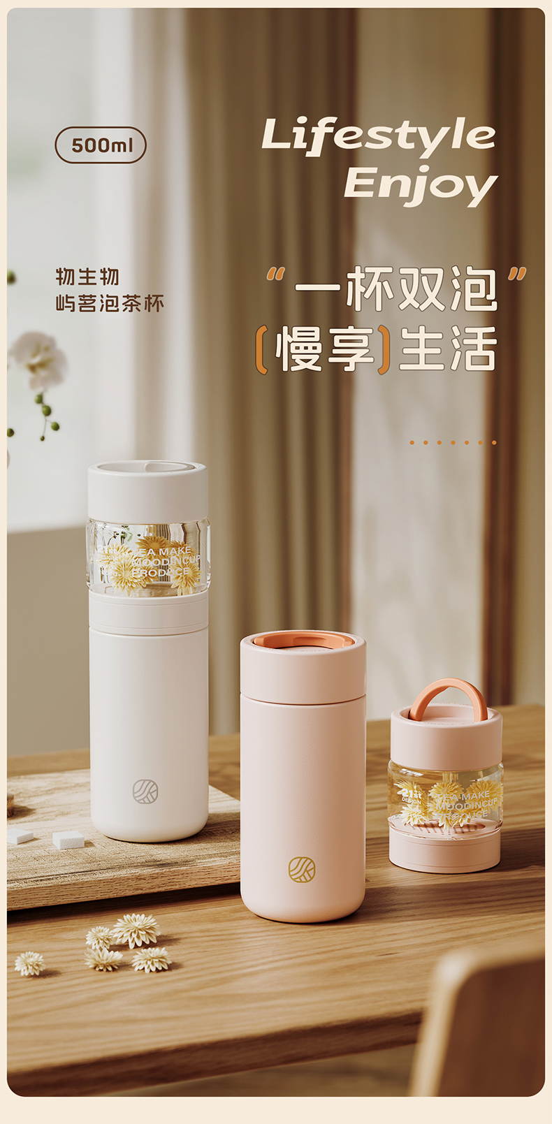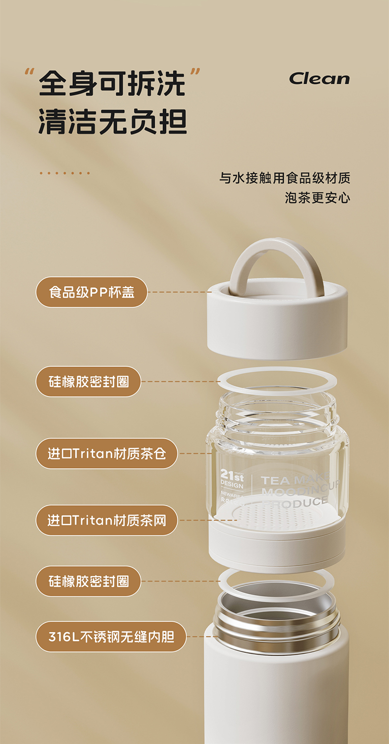 物生物(RELEA)屿茗泡茶杯350ML JV012463 单位:个 清湖蓝