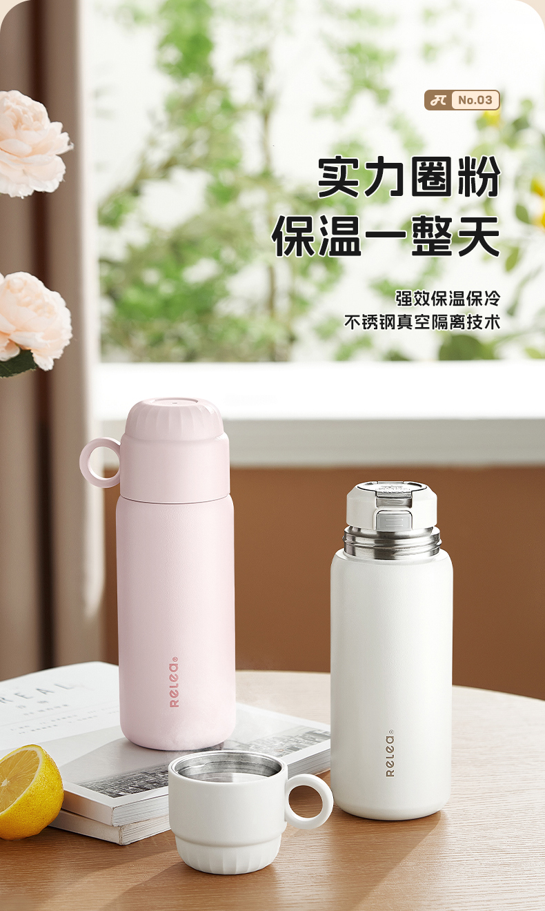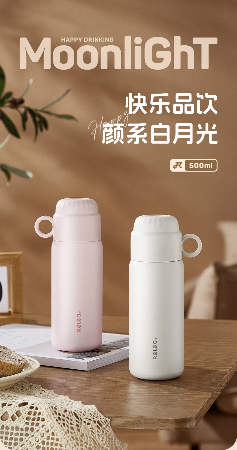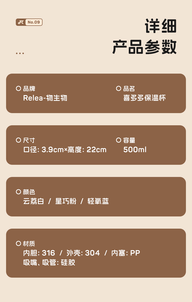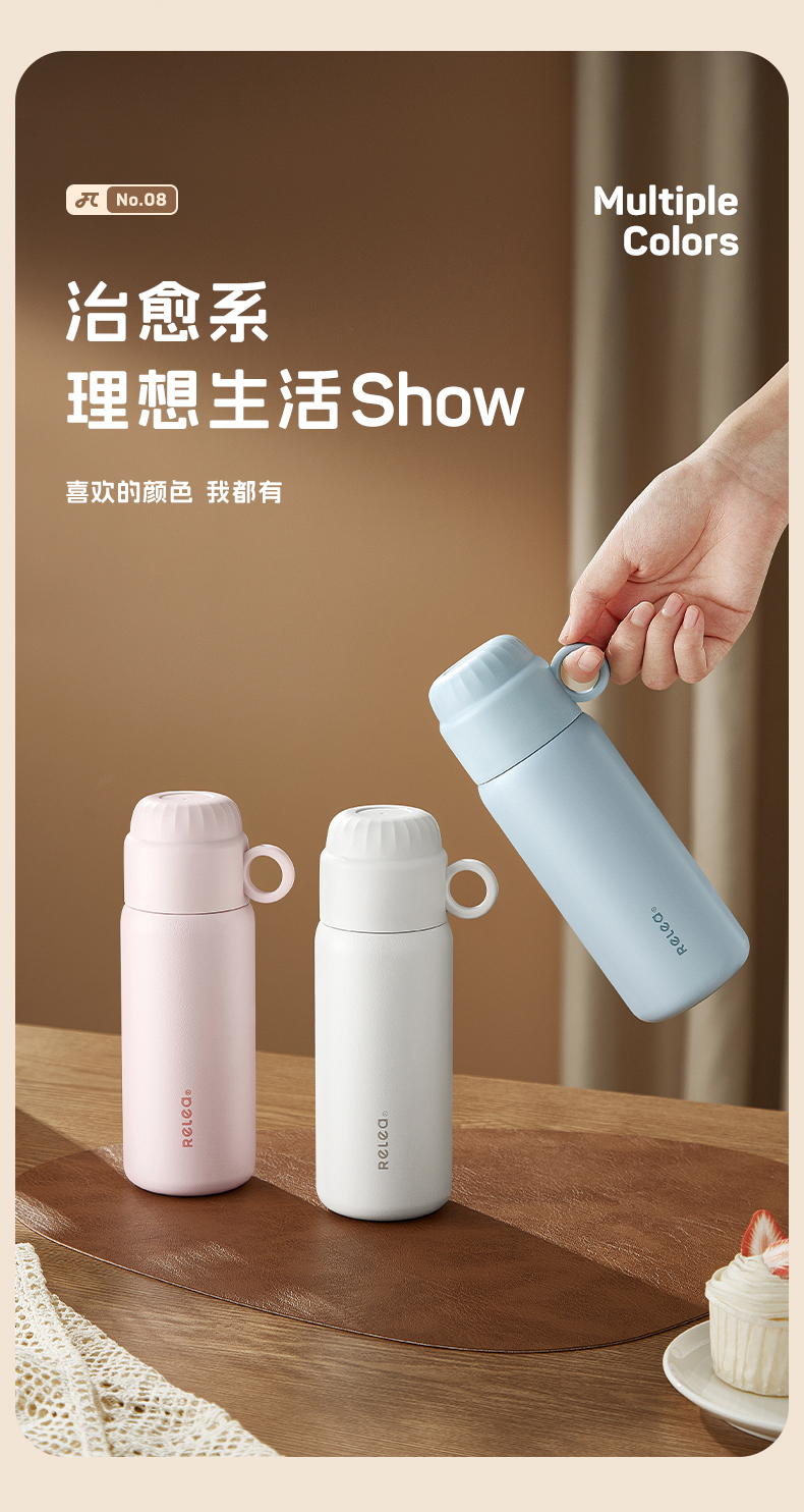 物生物(RELEA)喜多多保温杯500ML JV012455 单位:个 云荔白