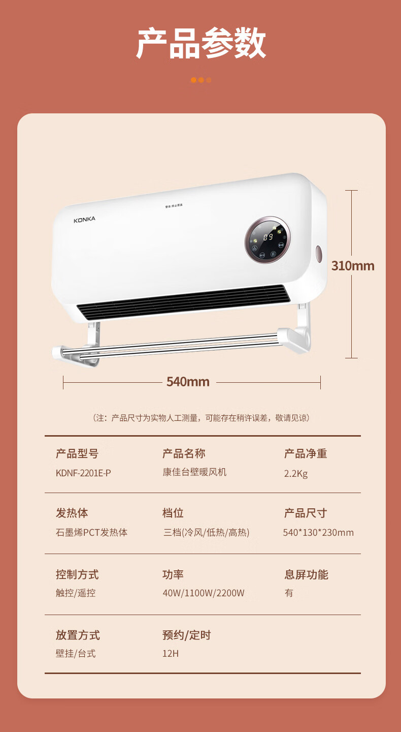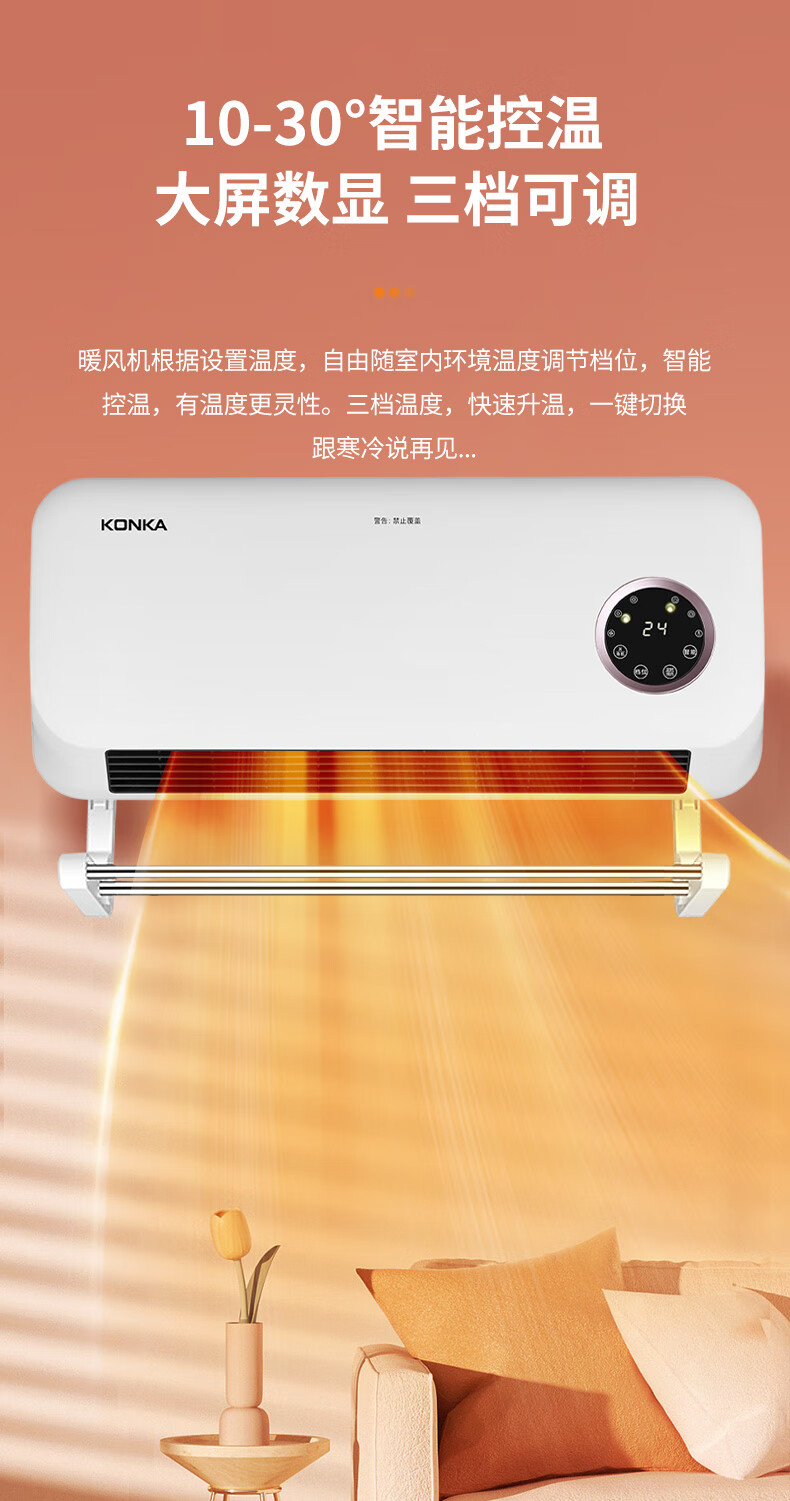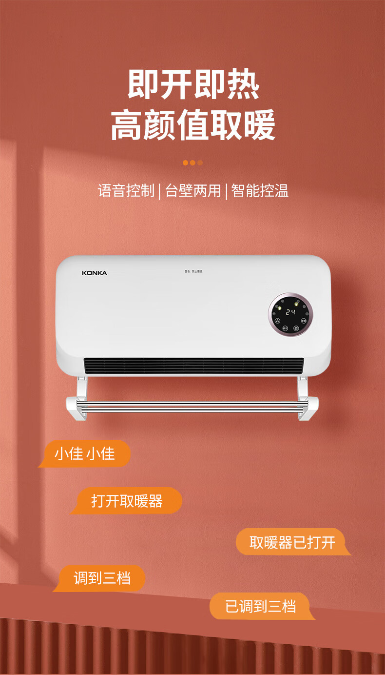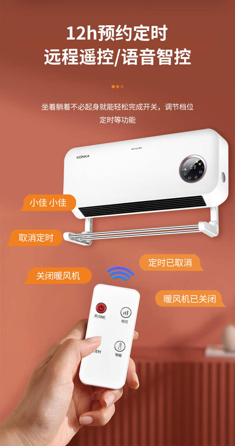 康佳(KONKA)家用石墨烯壁挂暖风机语音款(单位:台)KDNP-2201W-P 本白色