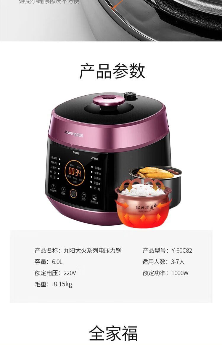 九阳(Joyoung)电压力锅大容量6L(单位:台)Y-60C82 紫色