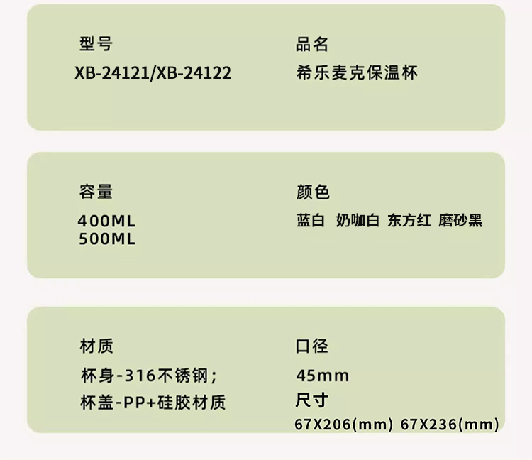 希乐(cille)麦克保温杯500ml 单位:个 蓝白