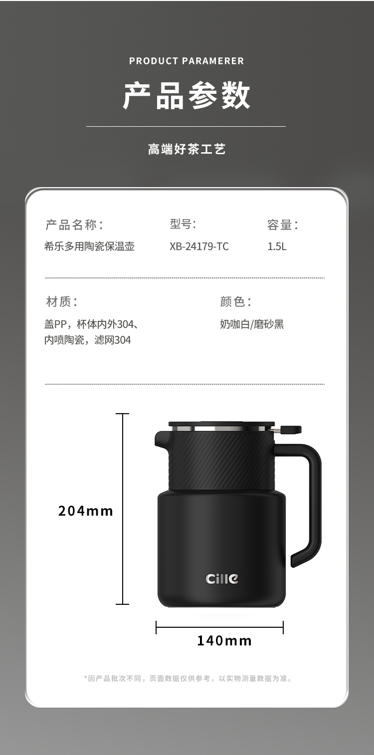 希乐(cille)多用陶瓷保温壶1.5L 单位:个 奶咖白