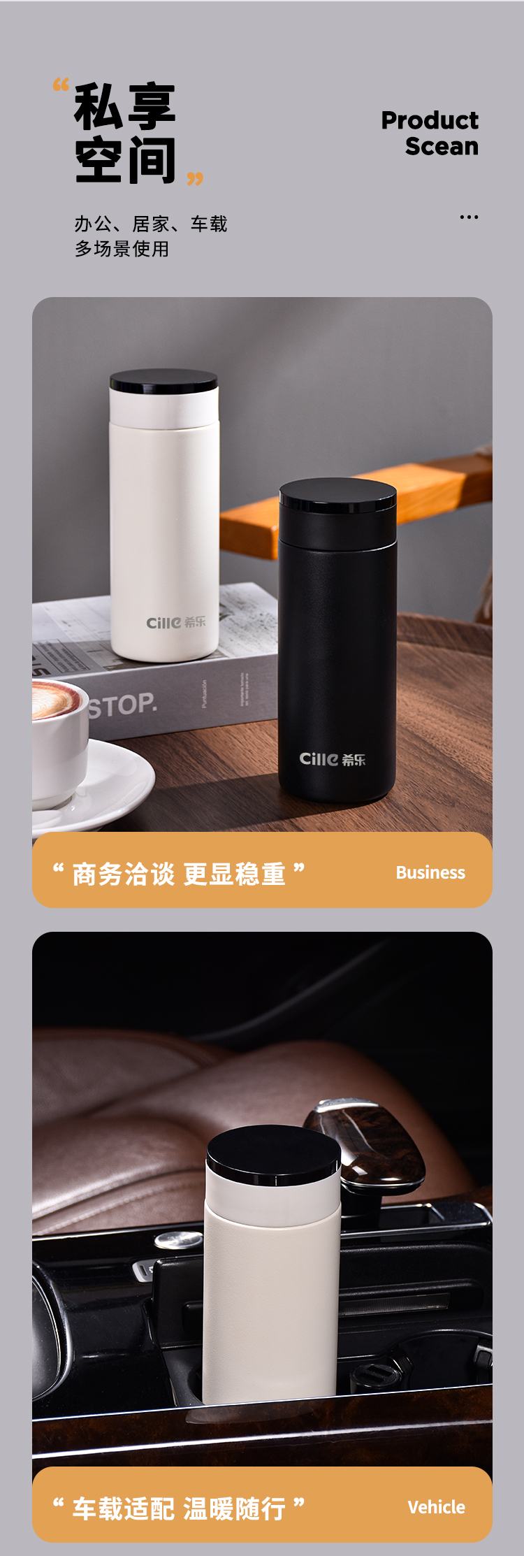 希乐(cille)商务保温杯490ml 单位:个 蛋粉白