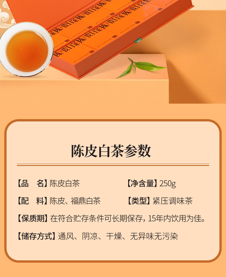 茗山生态茶 陈皮白茶 福鼎白茶老白茶小茶饼茶叶礼盒250g 单位:盒