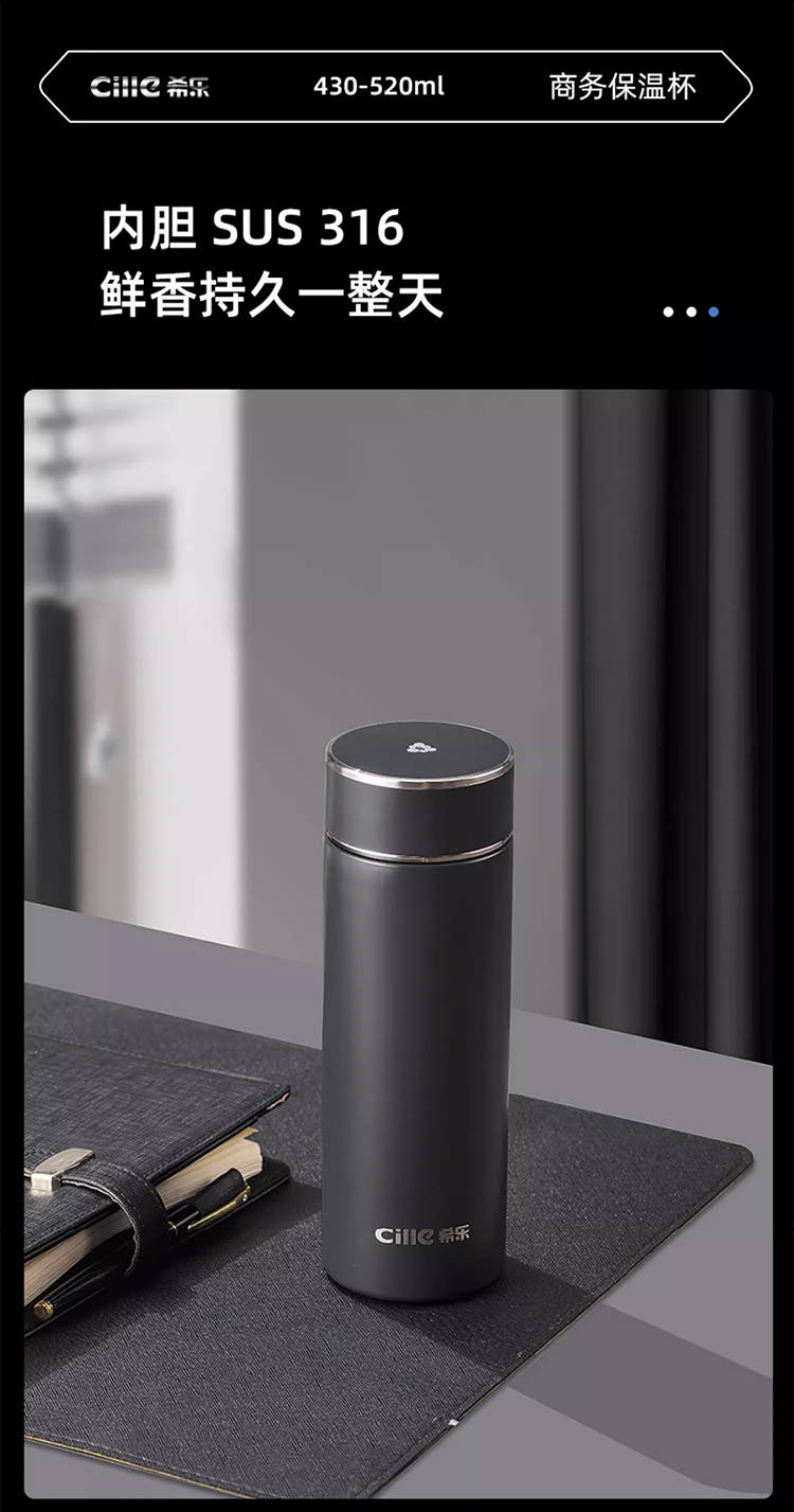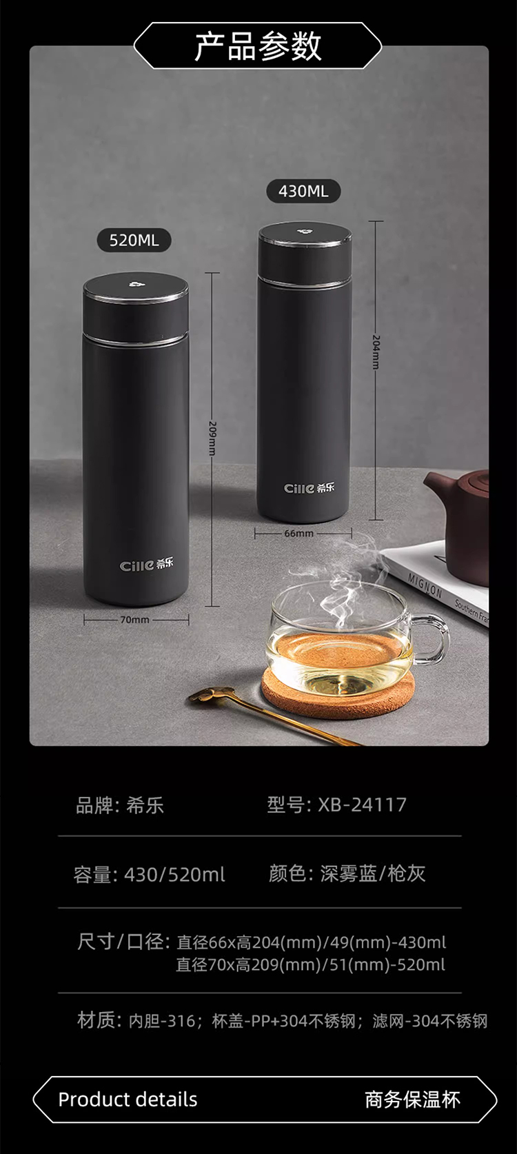 希乐(cille)商务保温杯520ml 单位:个 枪灰