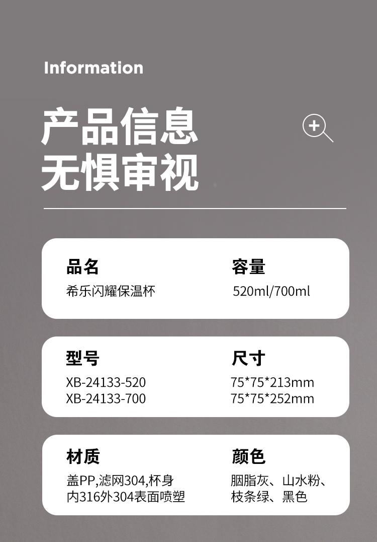希乐(cille)闪耀保温杯700ml 单位:个 山水粉