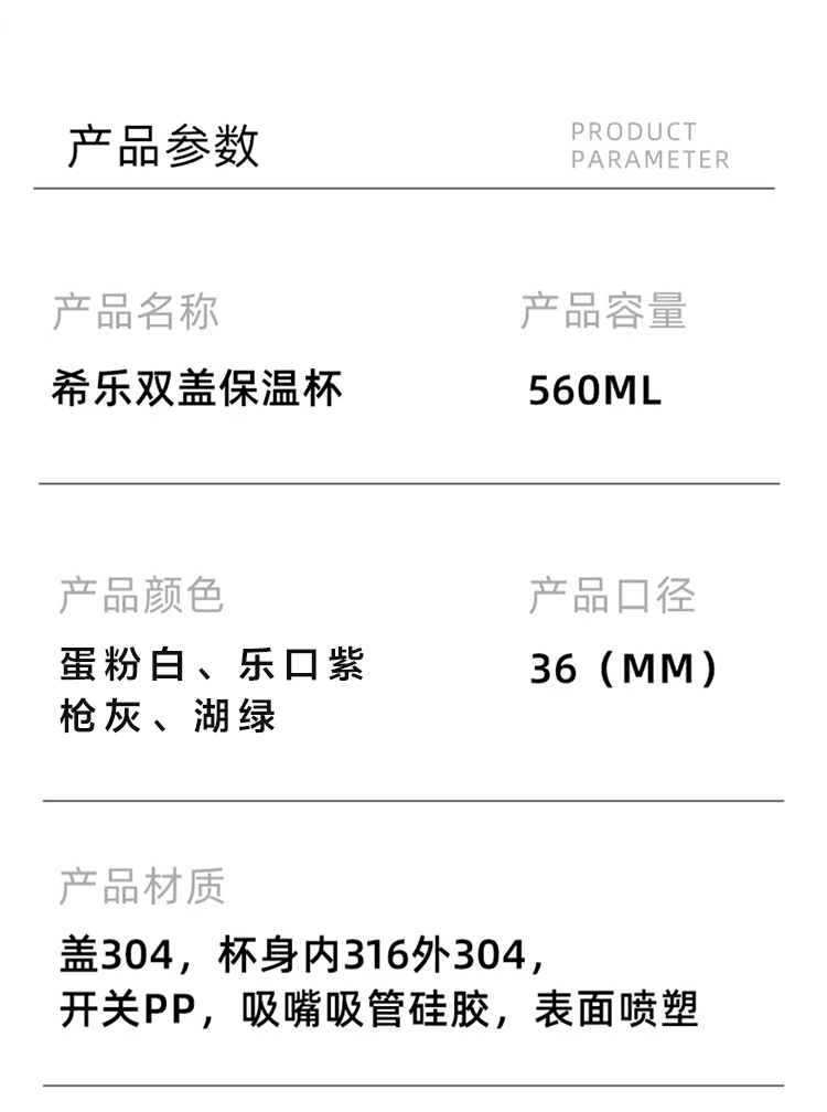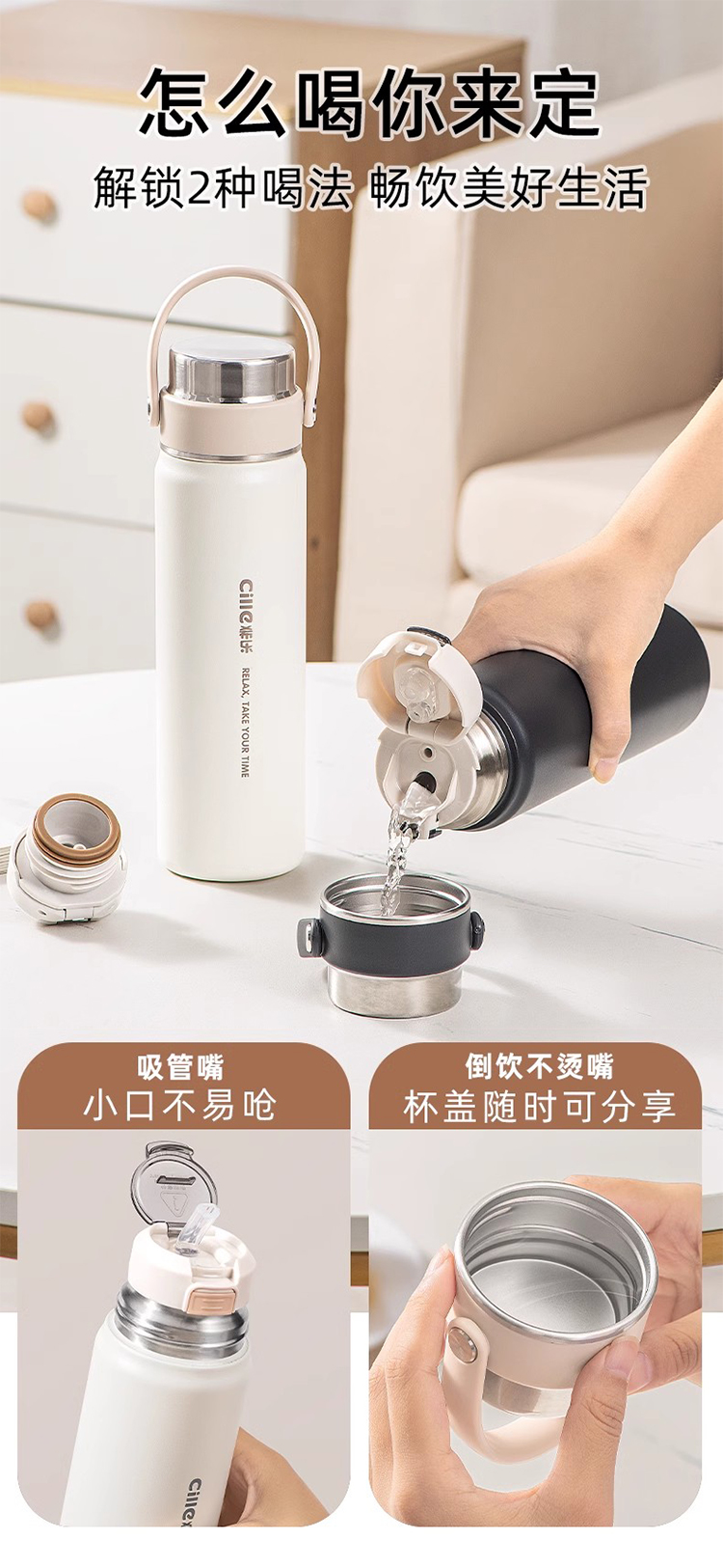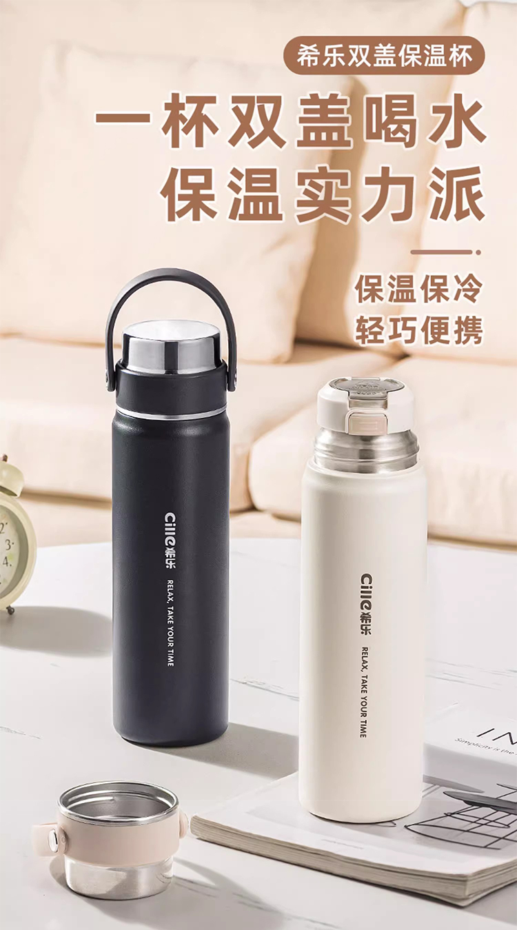 希乐(cille)双盖保温杯560ml 单位:个 蛋粉白