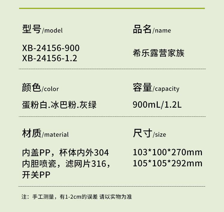 希乐(cille)露营家族水杯1.2L单位:个 冰巴粉