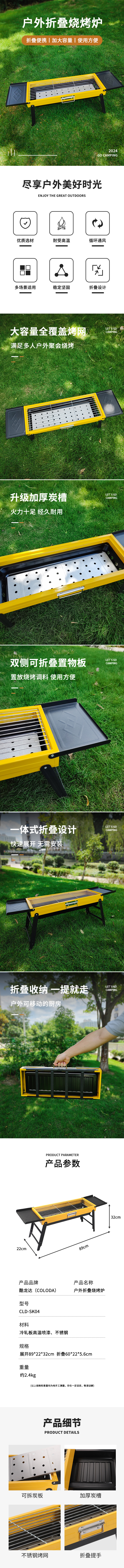 酷龙达(Coloda) 户外折叠烧烤炉烧烤架 CLD-SK04(单位:个) 黄色