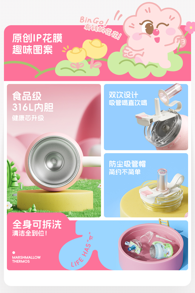 物生物(RELEA)BINGO保温杯960ML-Bingo!JV012465 单位:个 有钱花花