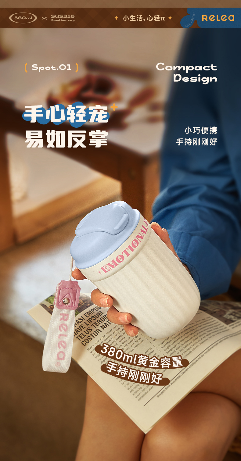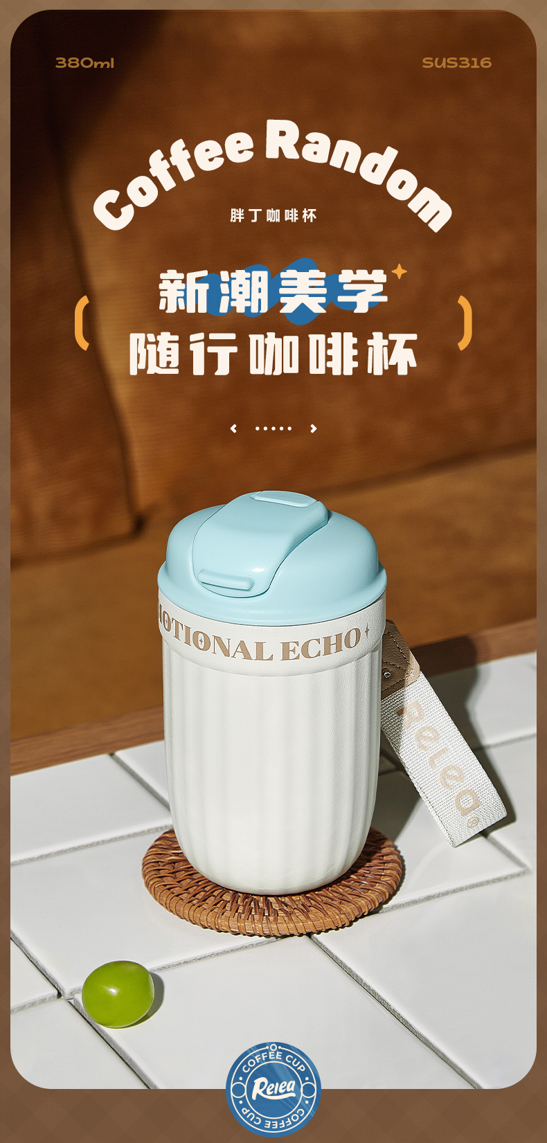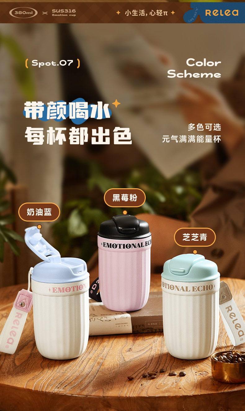 物生物(RELEA)胖丁咖啡杯380ml JV012475 单位:个 黑莓粉