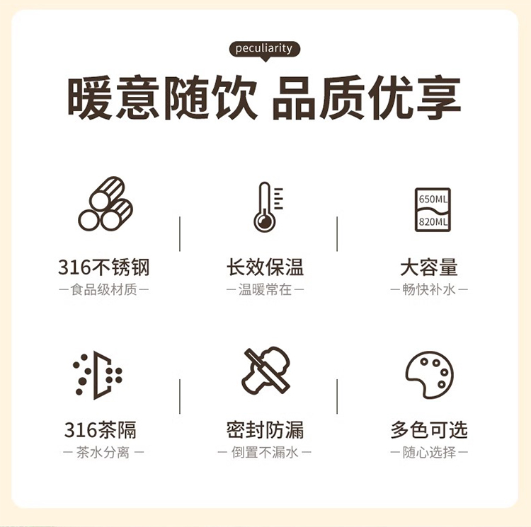 希乐(cille)随身保温杯820ml 单位:个 黄铜灰