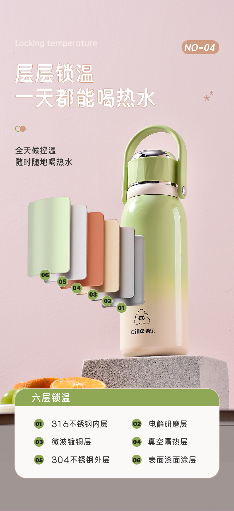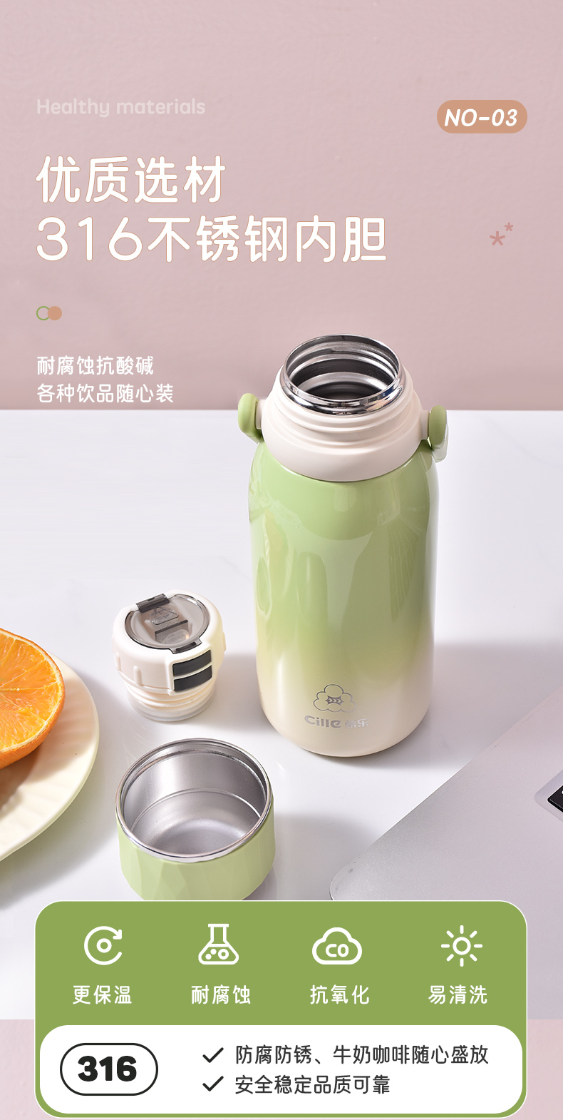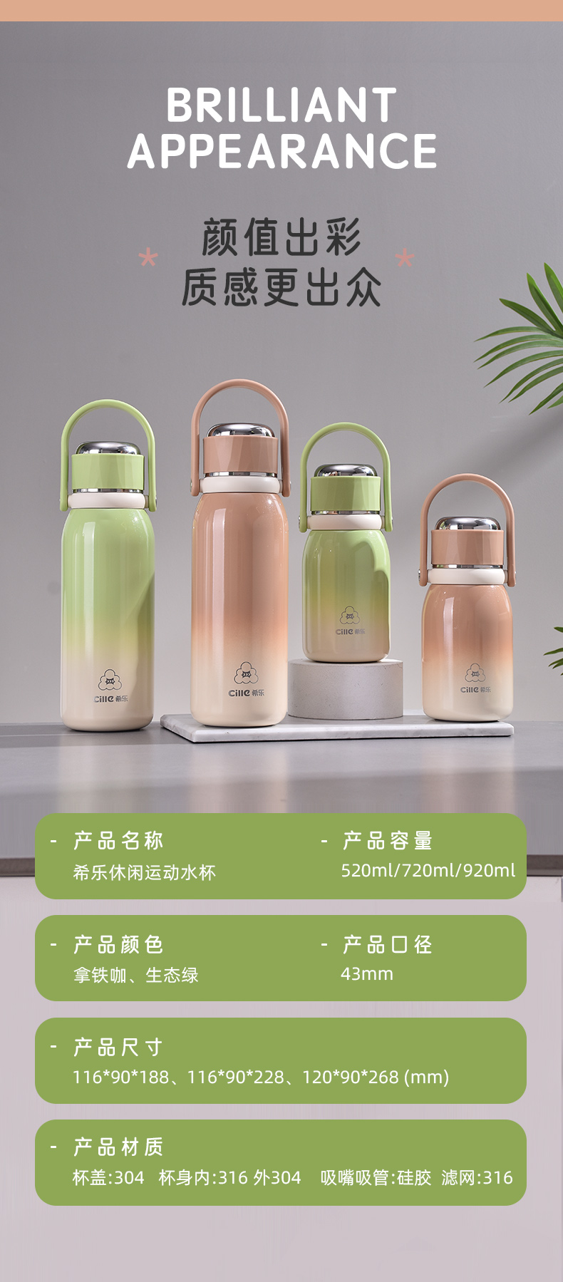 希乐(cille)休闲运动水杯920ml 单位:个 生态绿